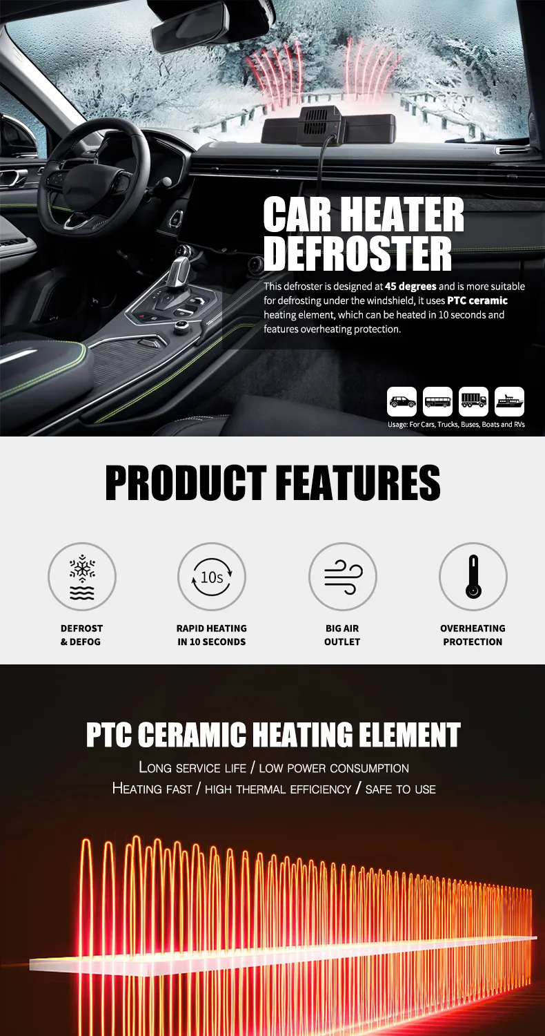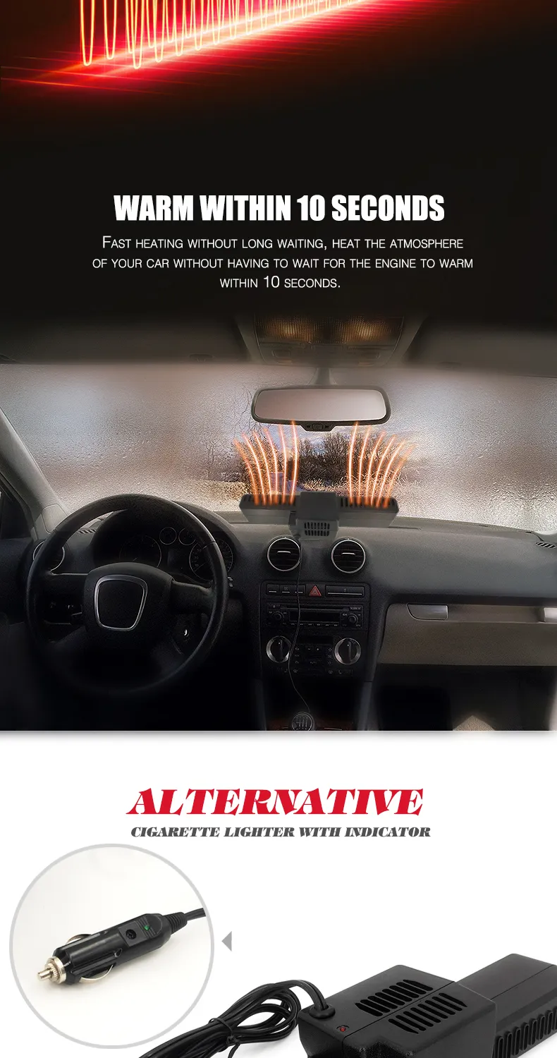 12v Car Heater Defroster Portable Windshield Defogger Fast Heating with Cigarette Lighter Plug