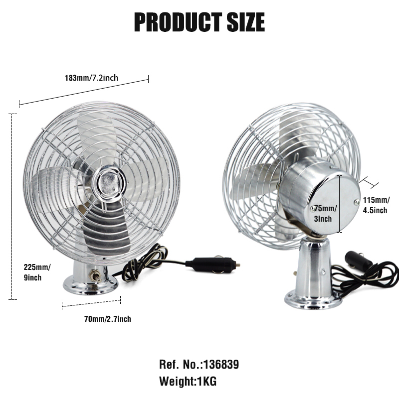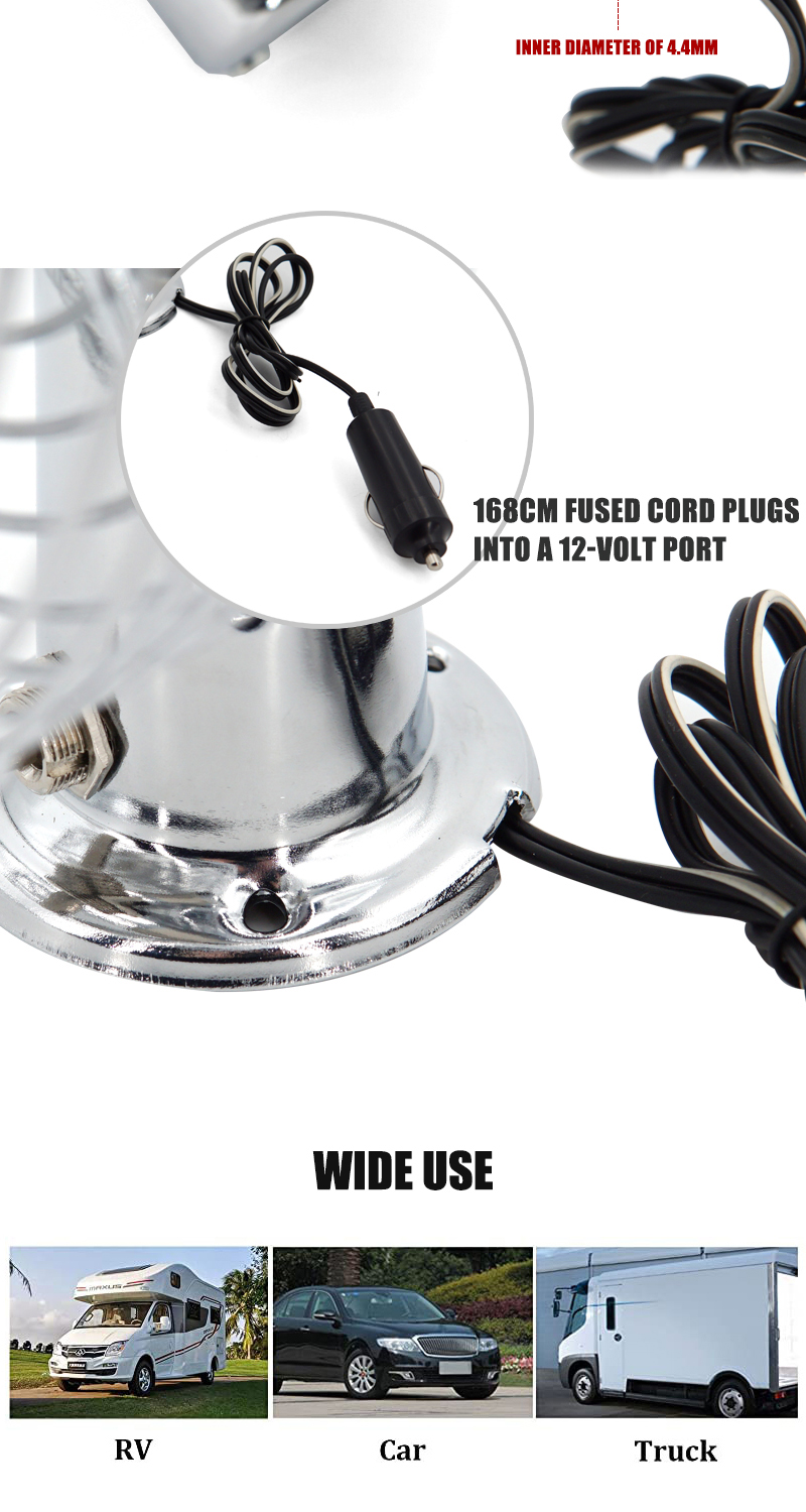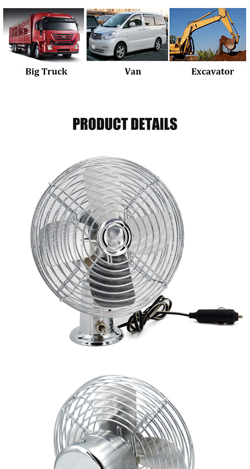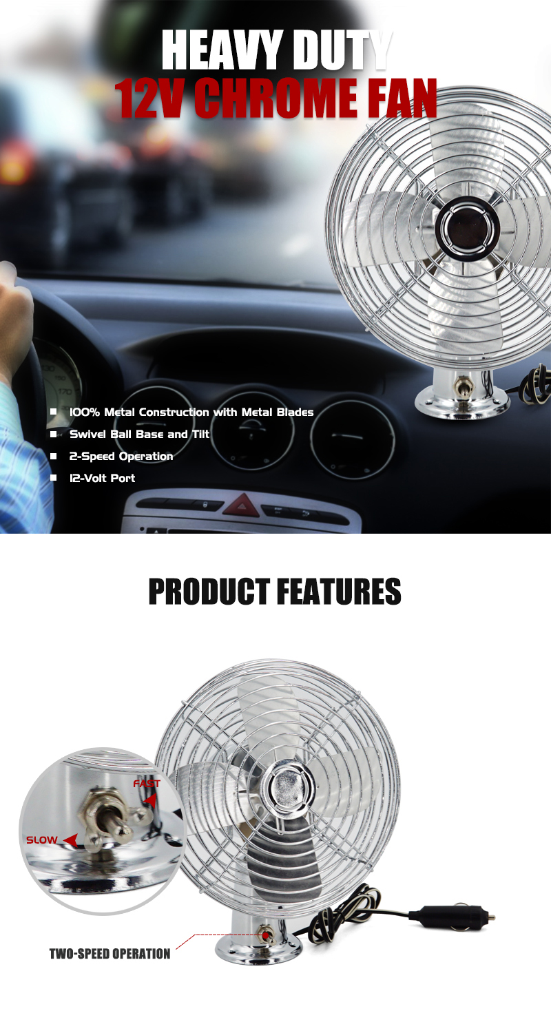 12V Heavy Duty 6" Chrome Fan RV Cooling Fan with 2-Speed Switch Car Fan