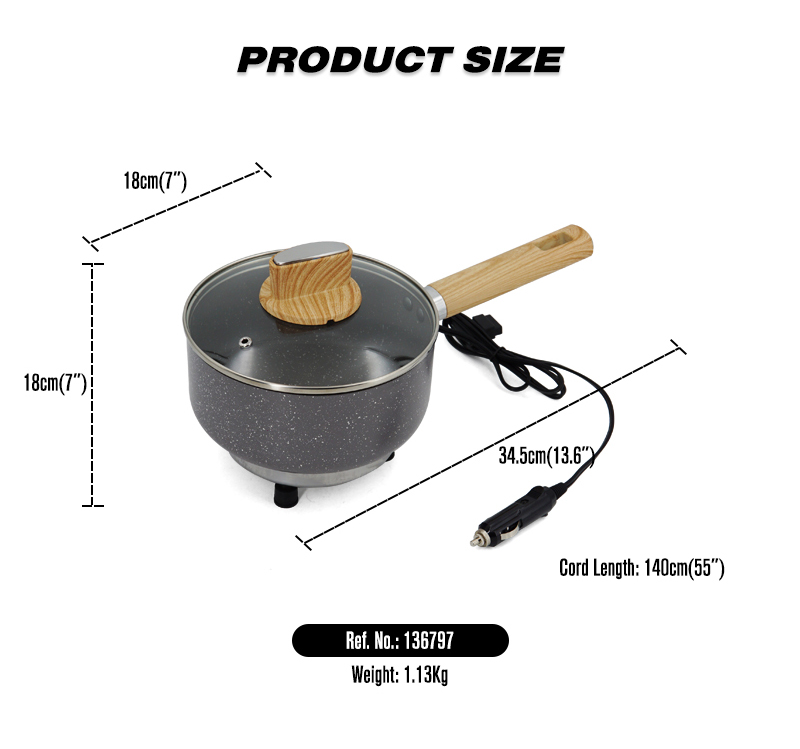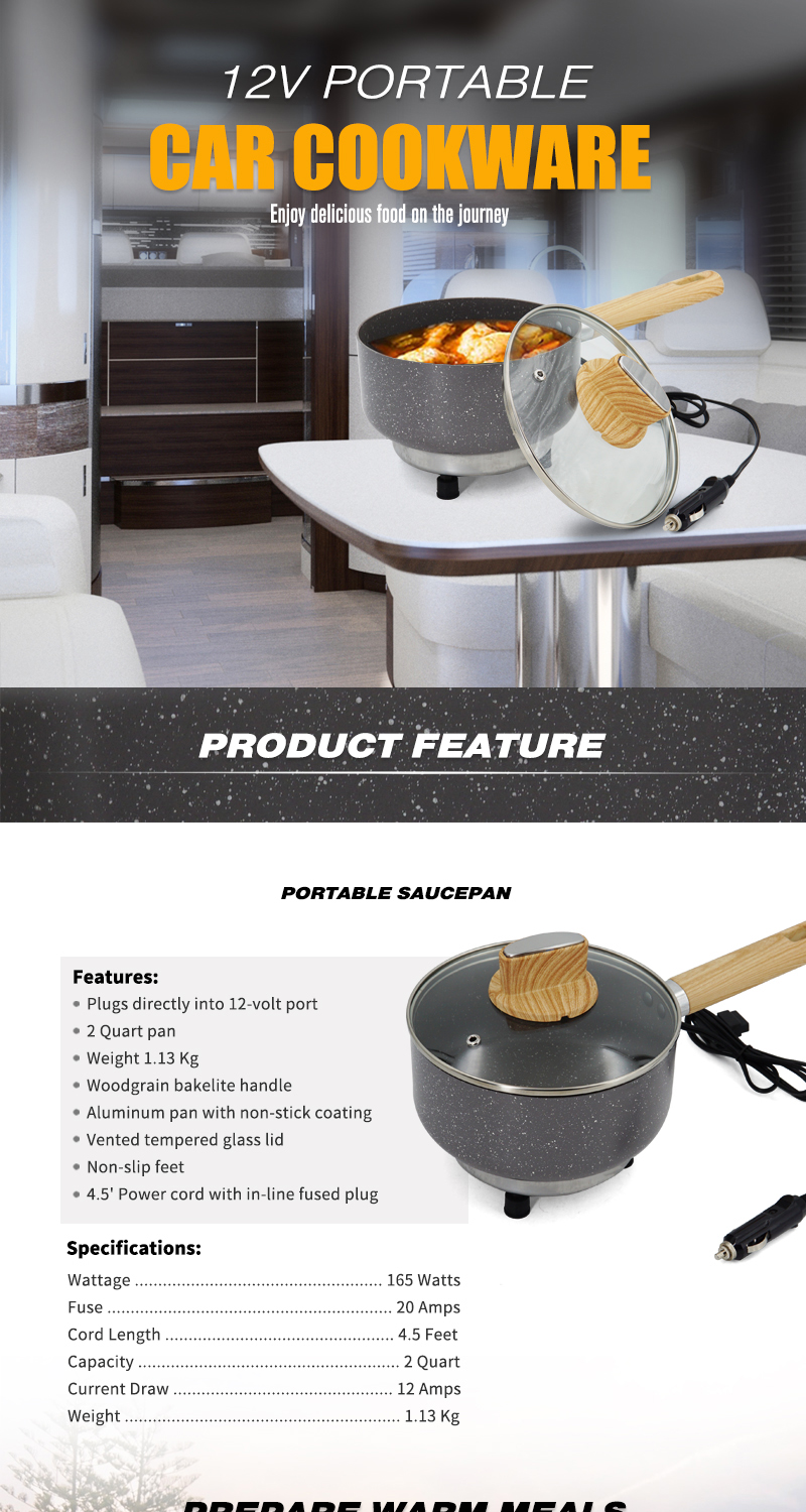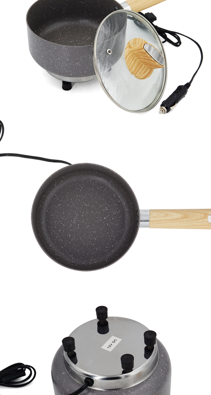 12V Portable Car Cookware Pan Car Saucepan Woodgrain Bakelite Handle for Camping