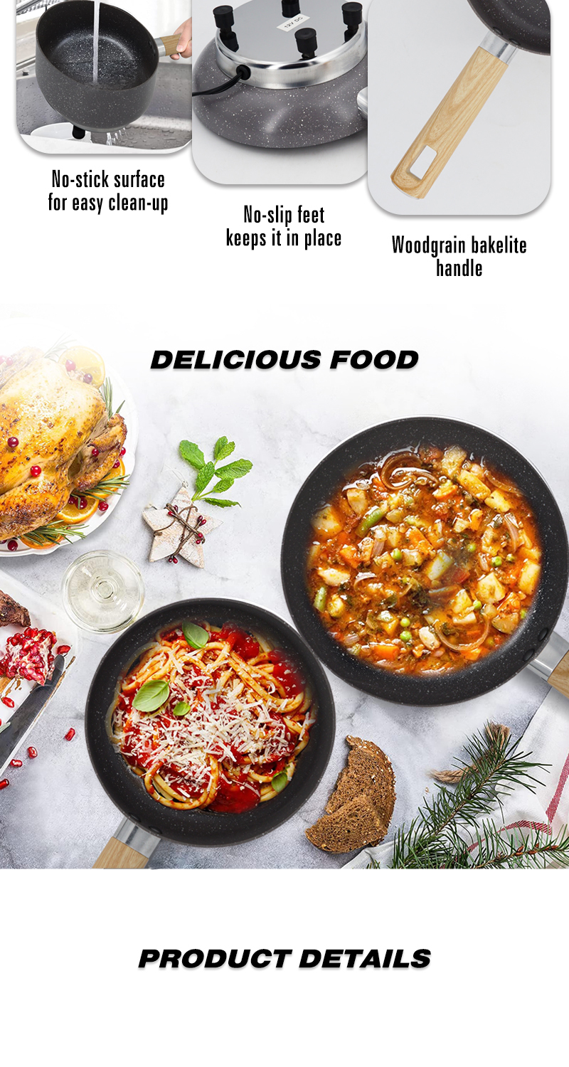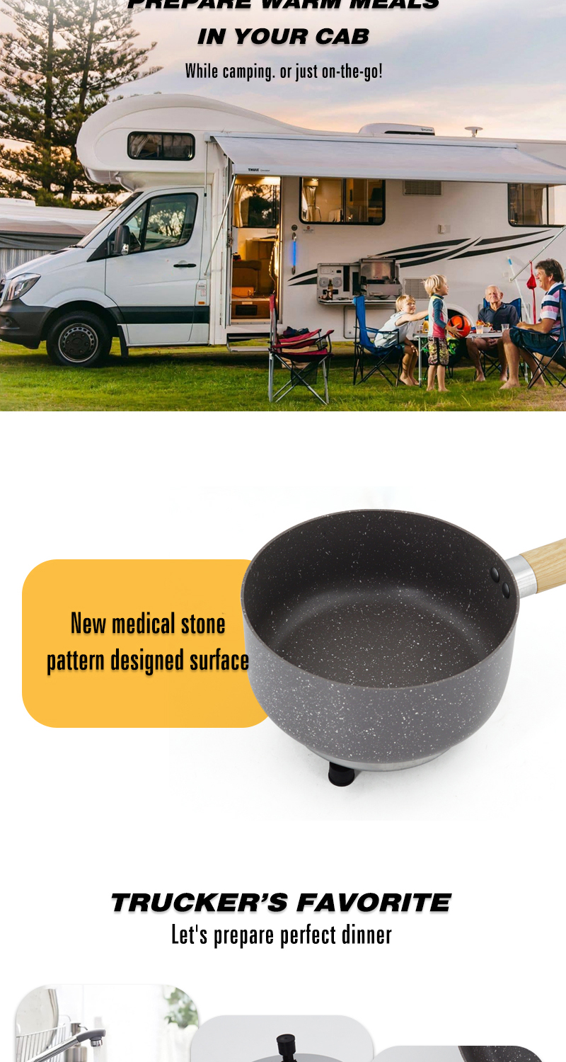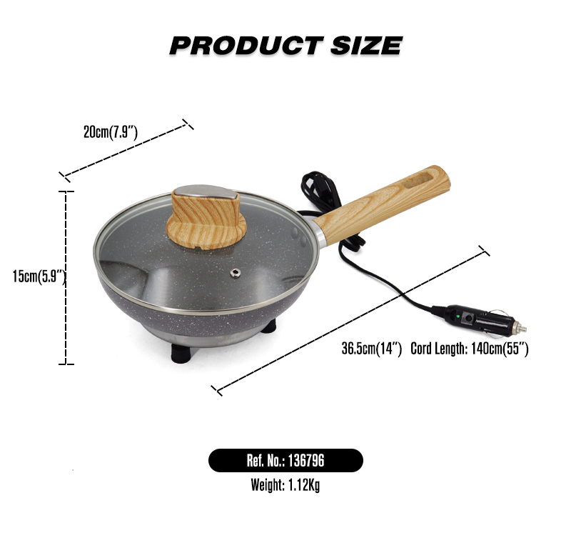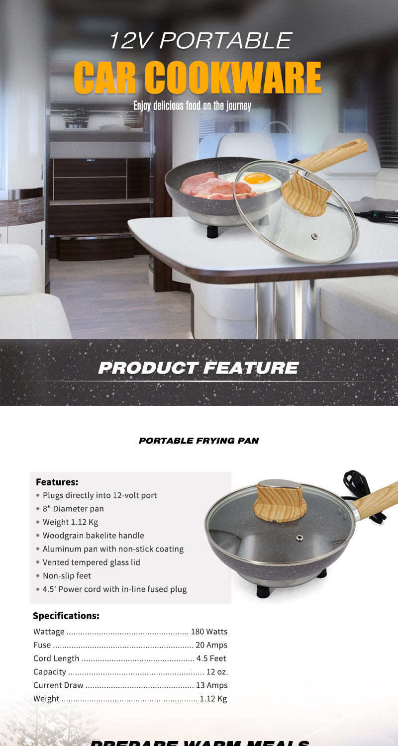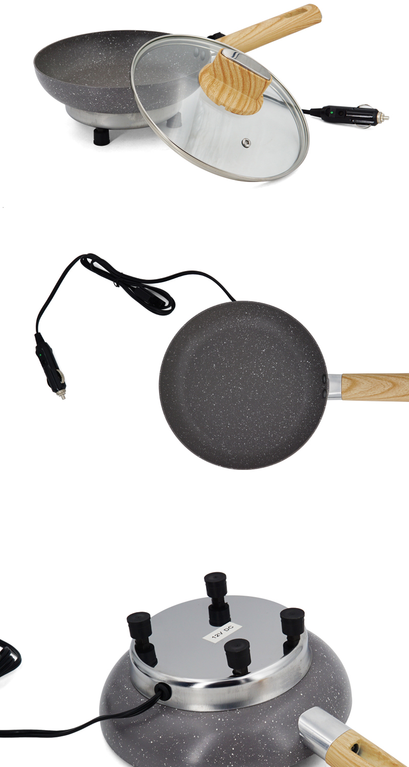 12V Portable Car Non-Stick Frying Cooking Pan Woodgrain Bakelite Handle for Camping