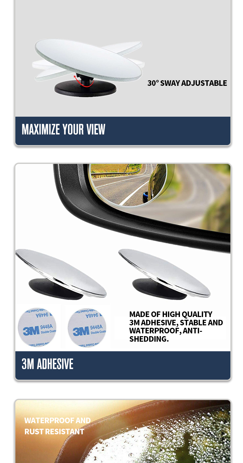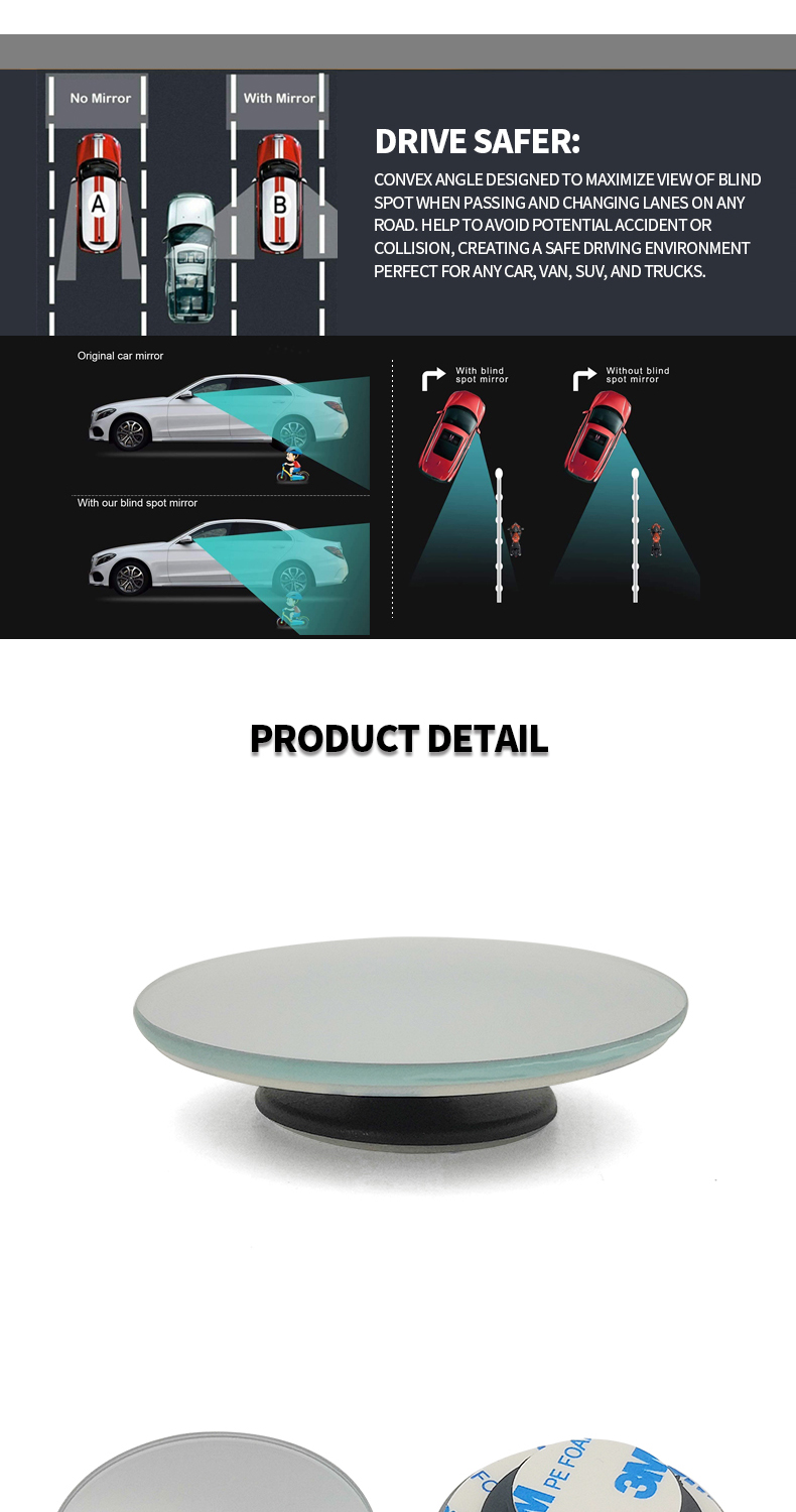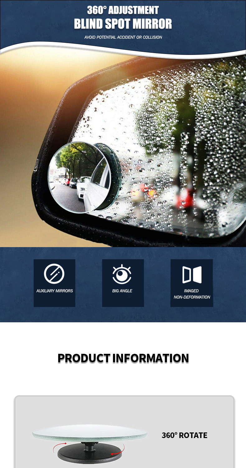 2" Round HD Glass Frameless Wide Angle Adjustable Convex Rear View Blind Spot Mirrors For Cars