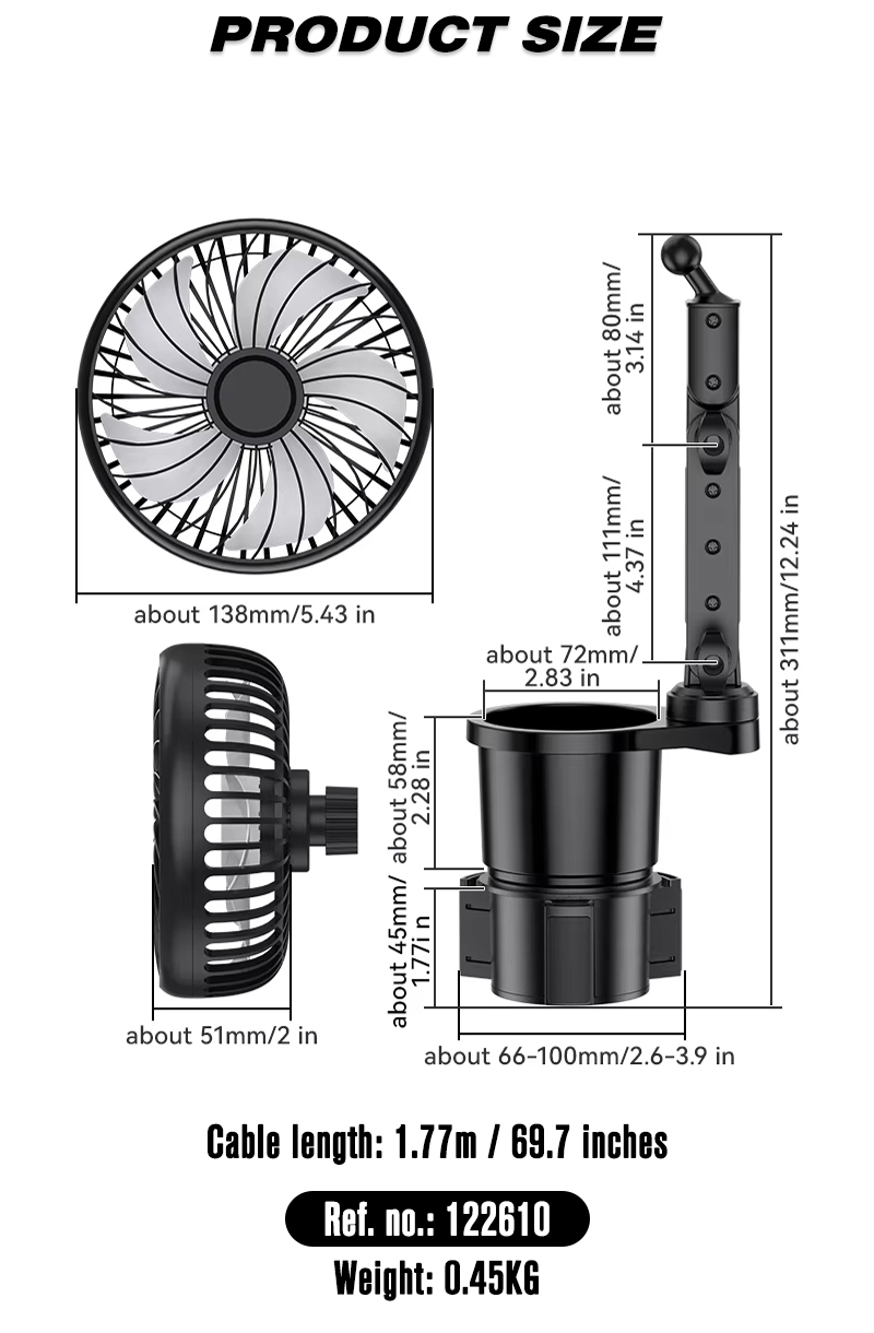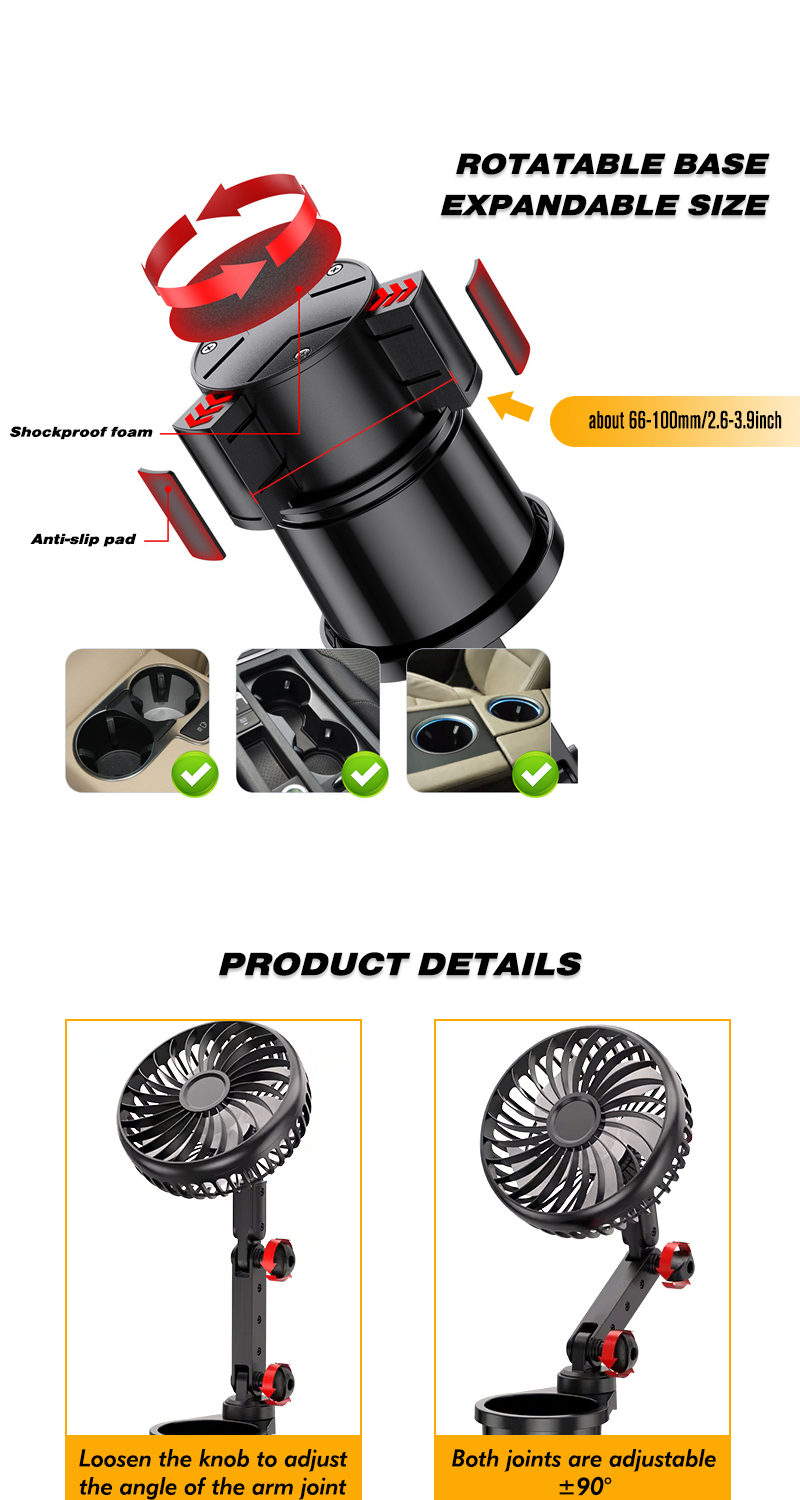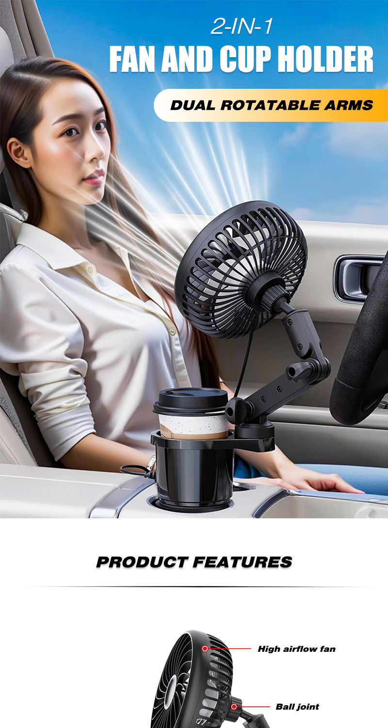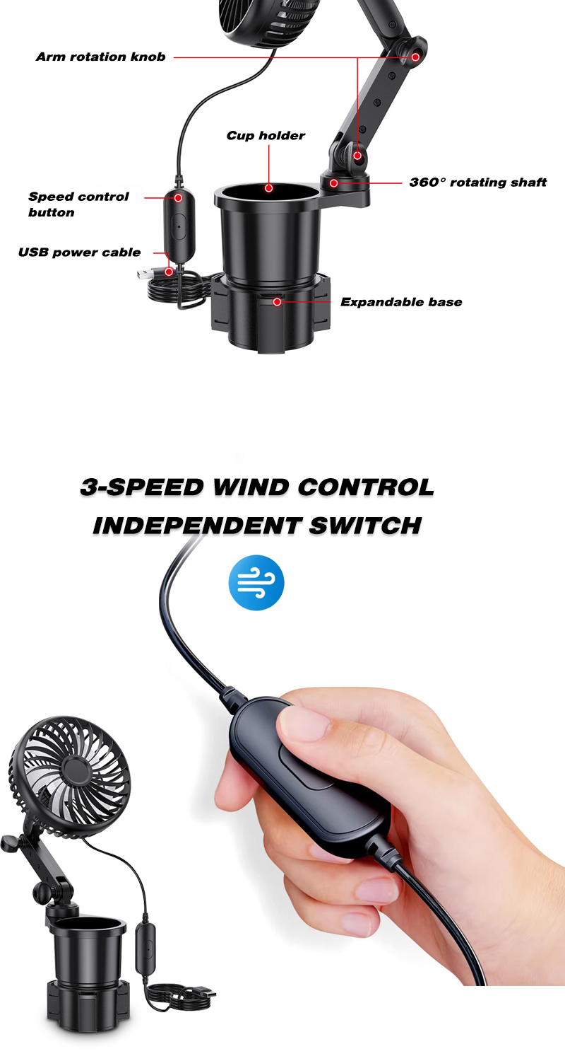 3-Speed Quiet Cooling Car Cup Holder Fan