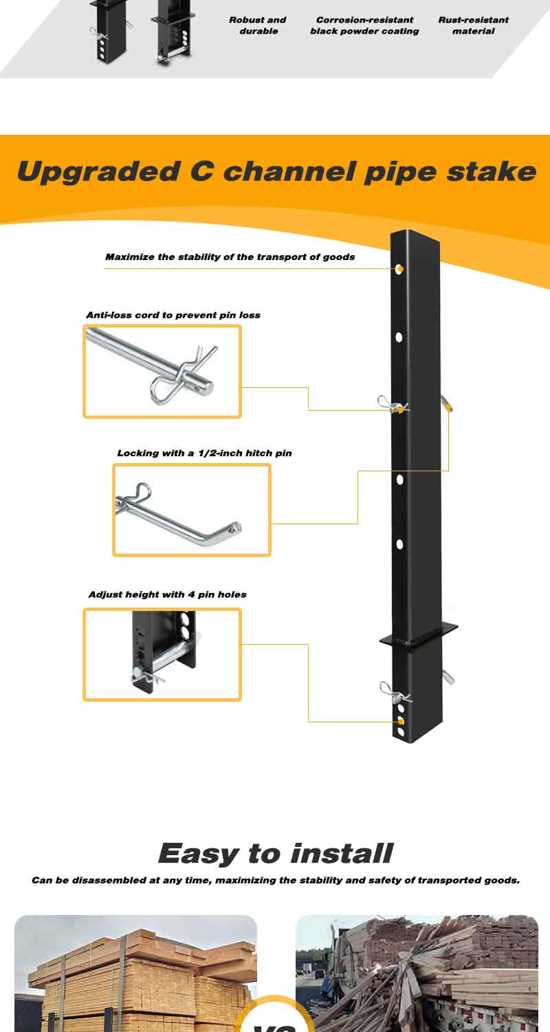 30 Inch 54 Inch Adjustable C Channel Pipe Stake for Flatbed Trailer