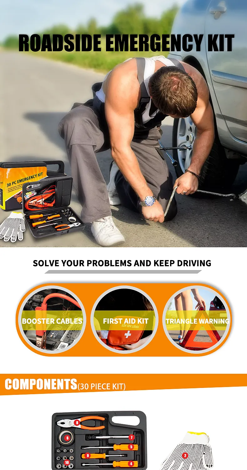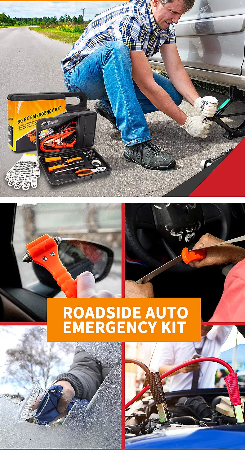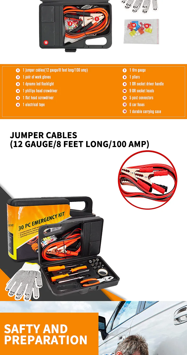 30 pieces Vehicle Tools Car Emergency repair and rescue Kit With Jumper Cables