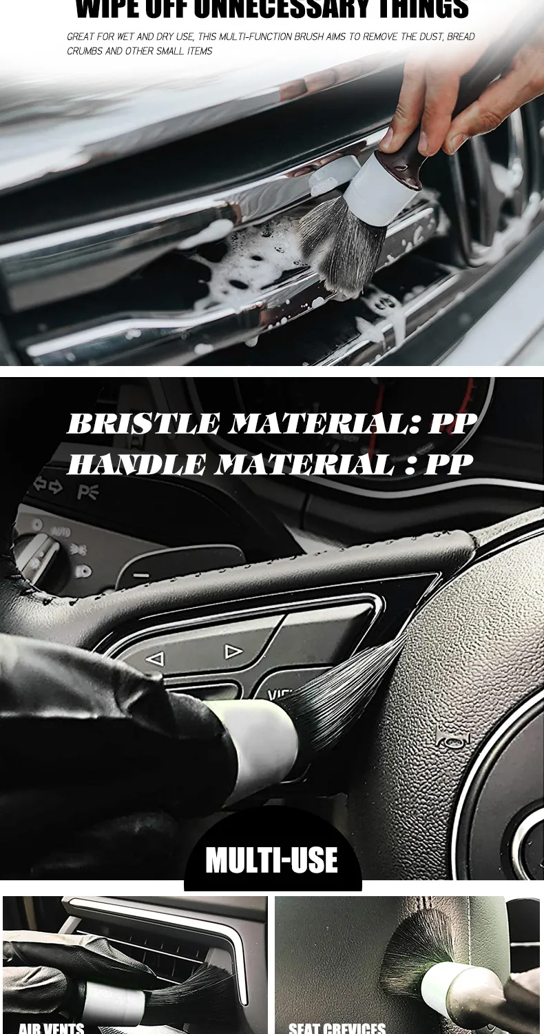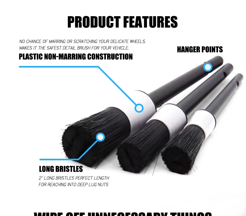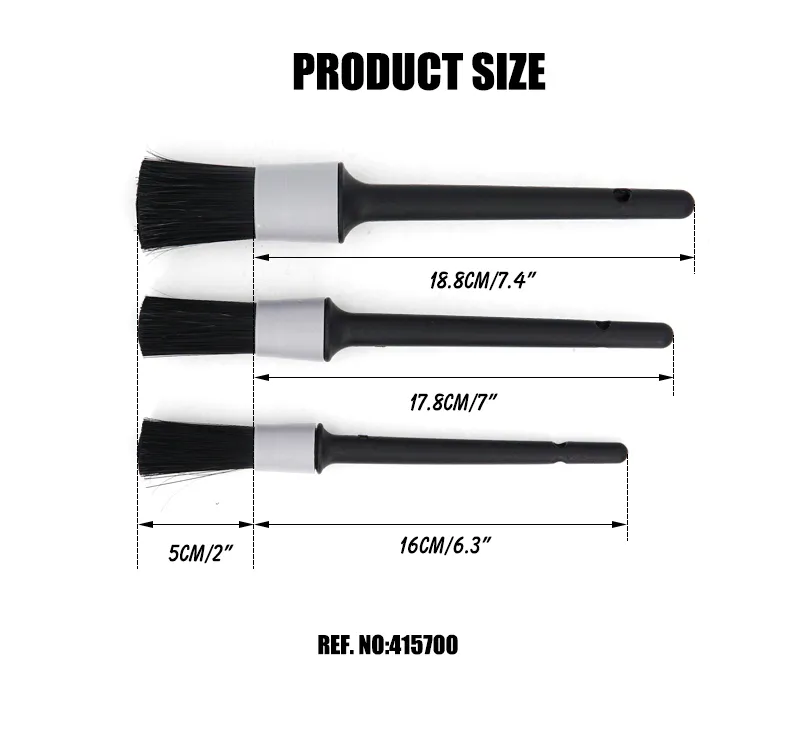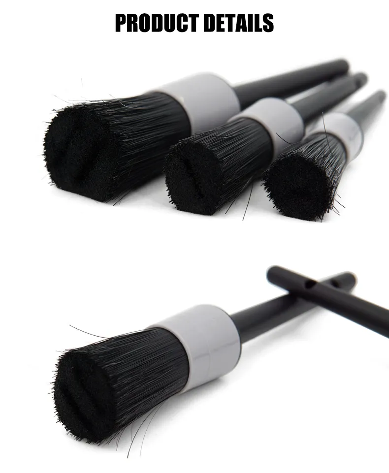 3pcs Car Detailing Wash Long Soft PP Bristle Brushes Set for Cleaning