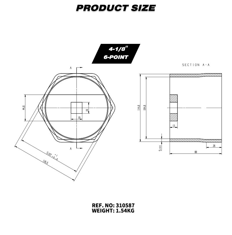 4-1/8" 6-Point Axle Nut Socket, 3/4" Drive