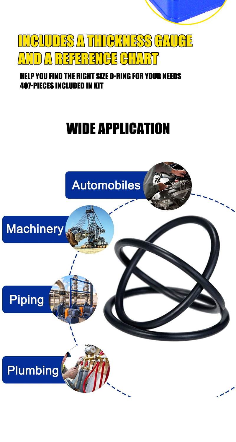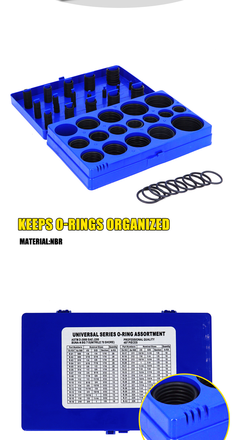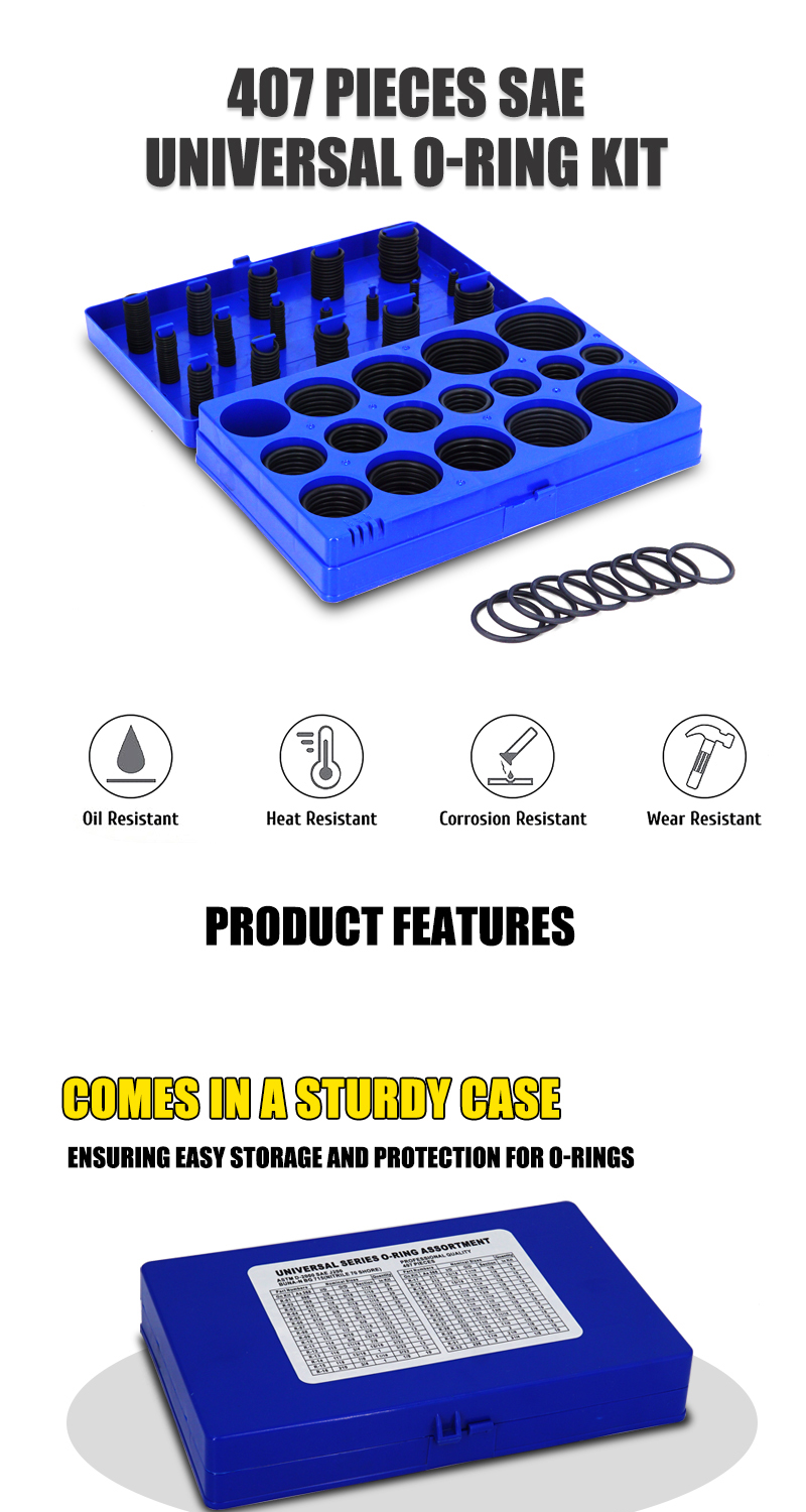 407 Pieces SAE Universal O-Ring Kit Rubber Seals O Rings