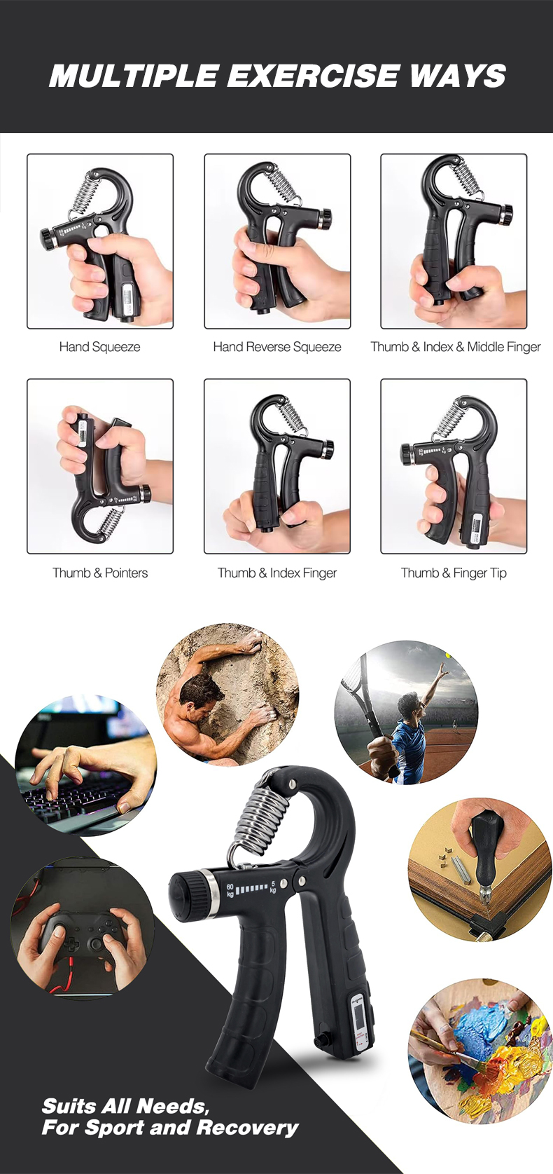 5-60 kg Adjustable Hand Grips Strengthener Exerciser with Mechanical Counter