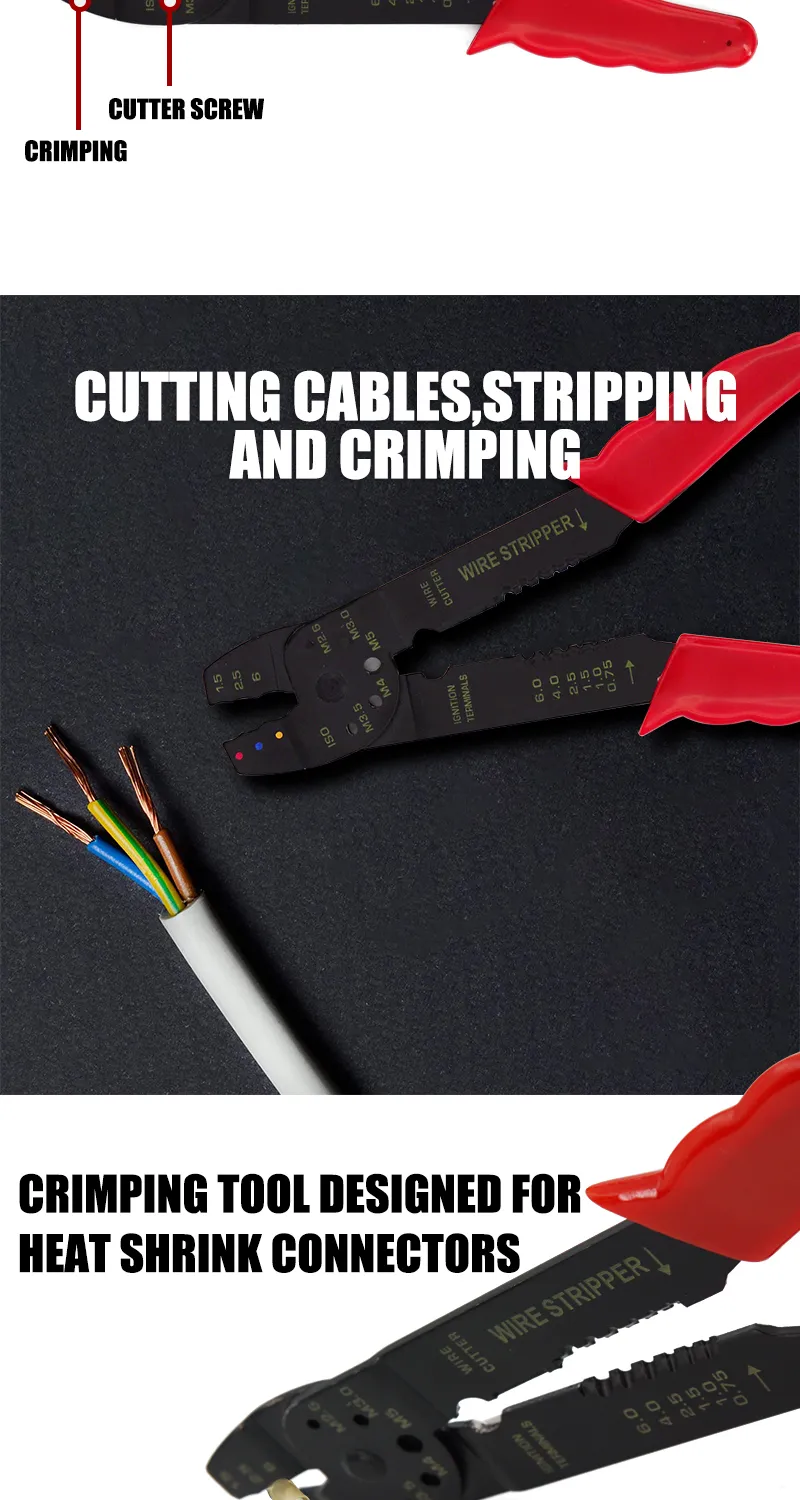 8" Crimping Tool Wire Stripper Cutter Wire Stripping Tool Multi-Function Hand Tool