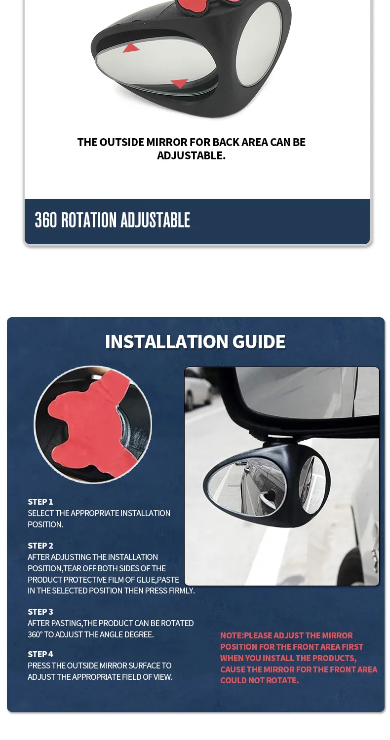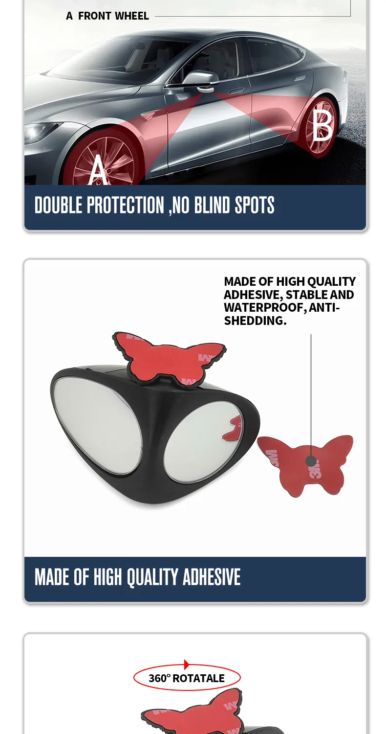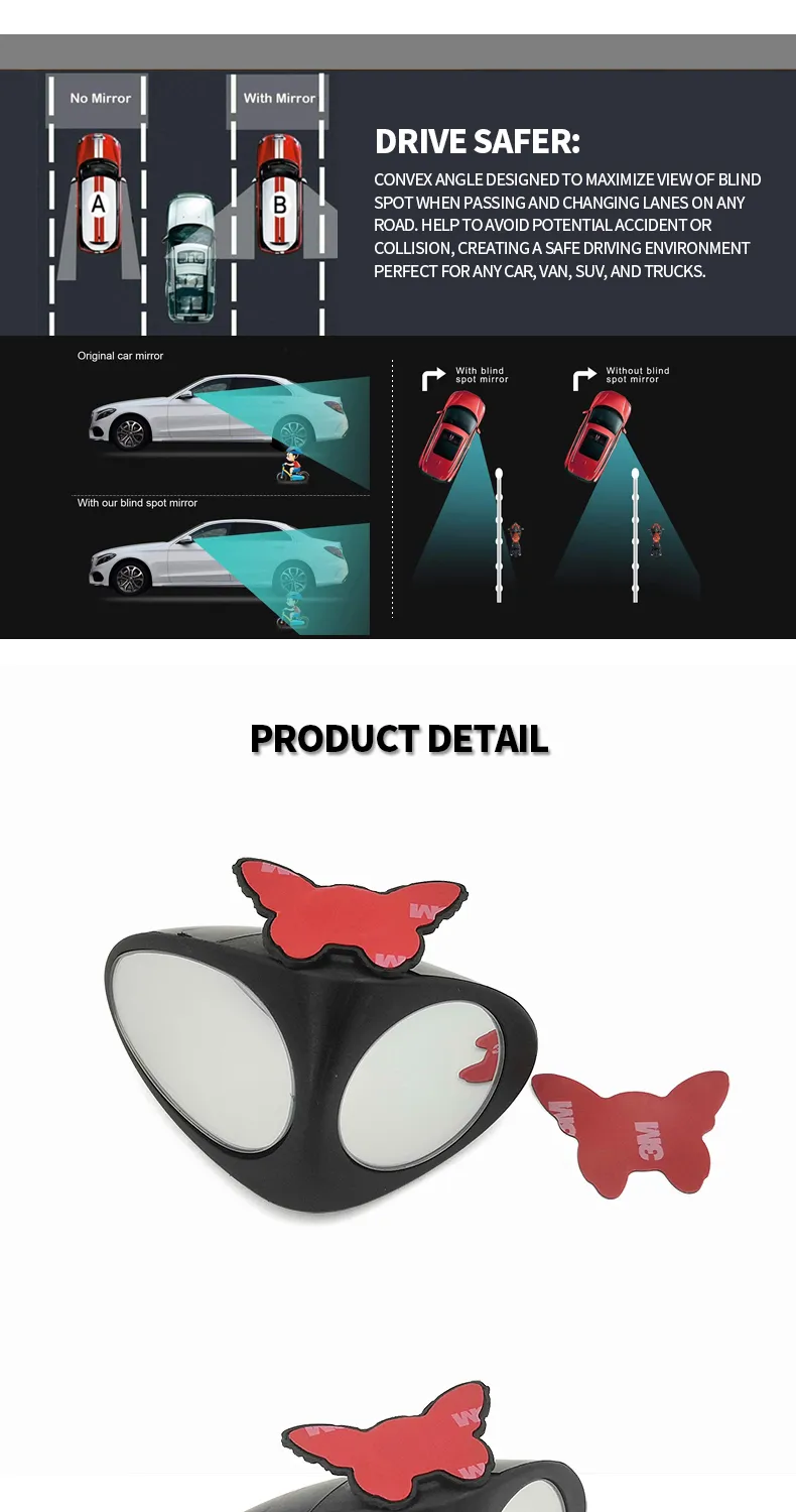 Adjustable Triangle Double Lens Left Blind Spot Rear View Mirrors for Car