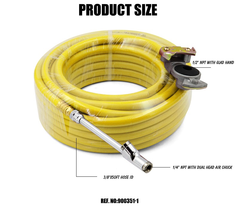 Air PVC 50' Tire Inflator Hose Kits with Gladhand Air Chuck Hose