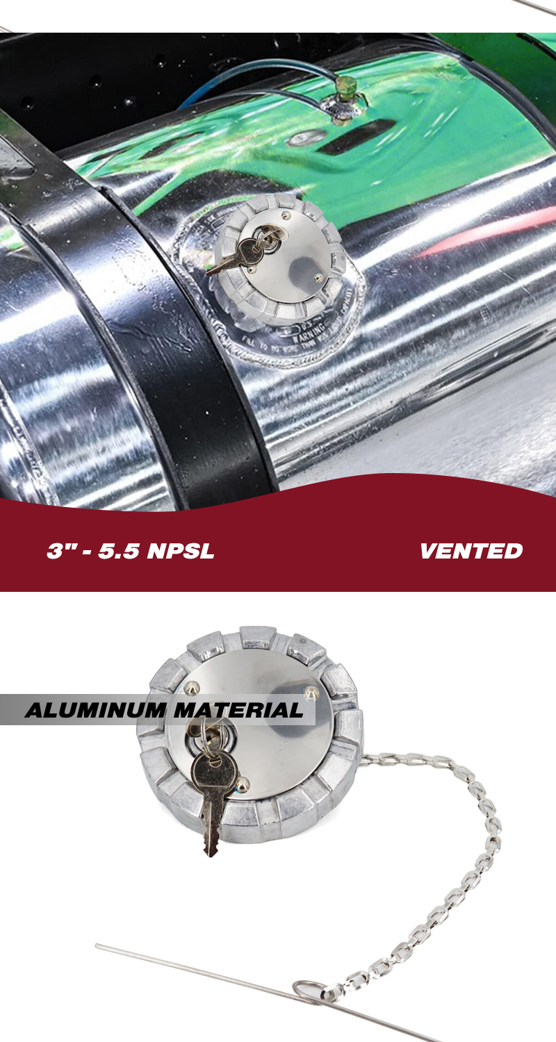 Aluminum Locking Diesel Fuel Cap 3" - 5.5 NPSL Fuel Tanks Cover Replacement Parts