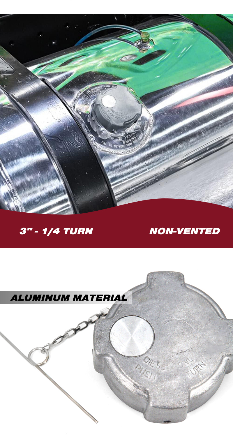 Aluminum Un-Locking Diesel Fuel Cap 3" - 1/4 Turn Fuel Tanks Cover Replacement Parts