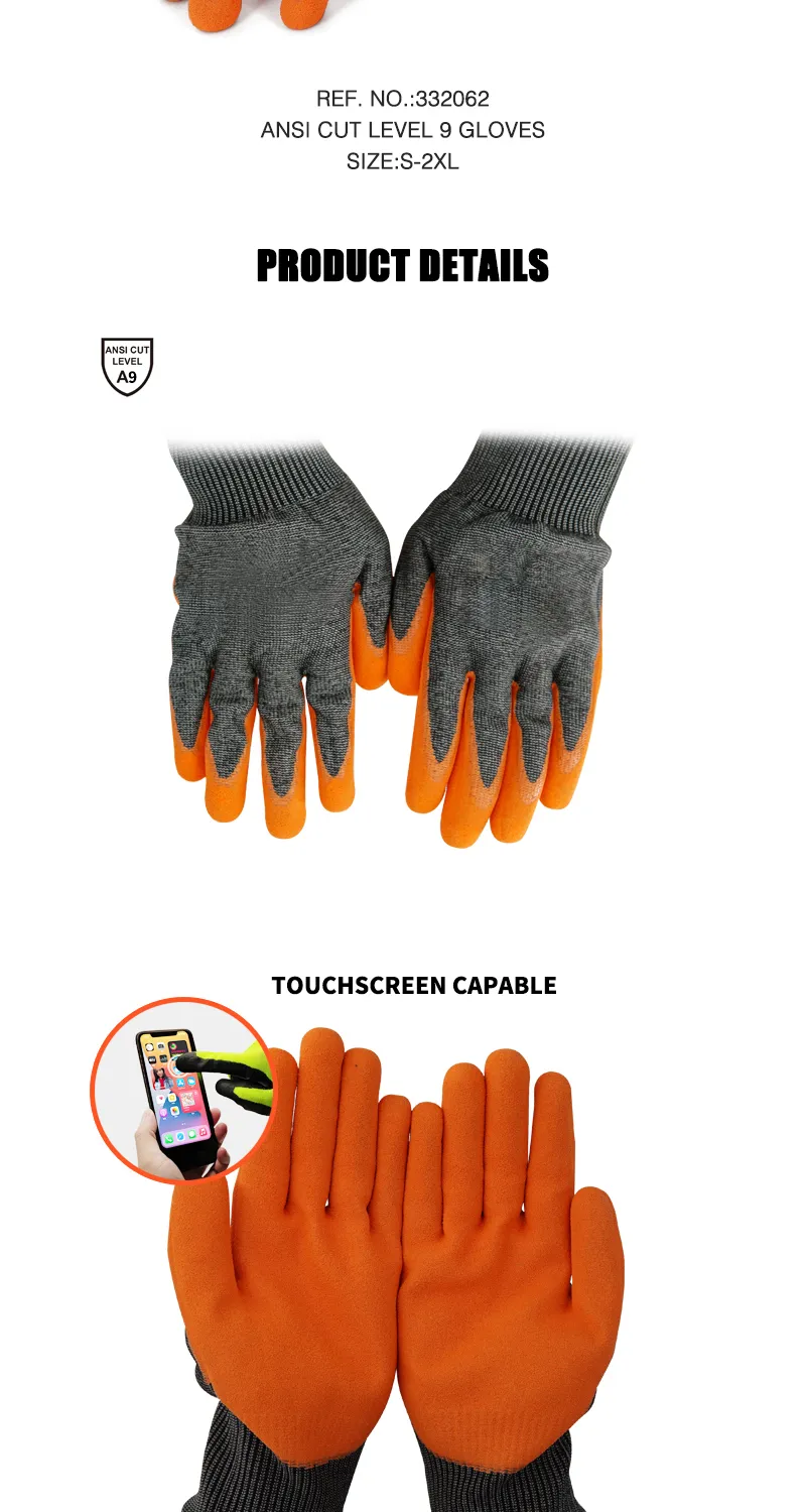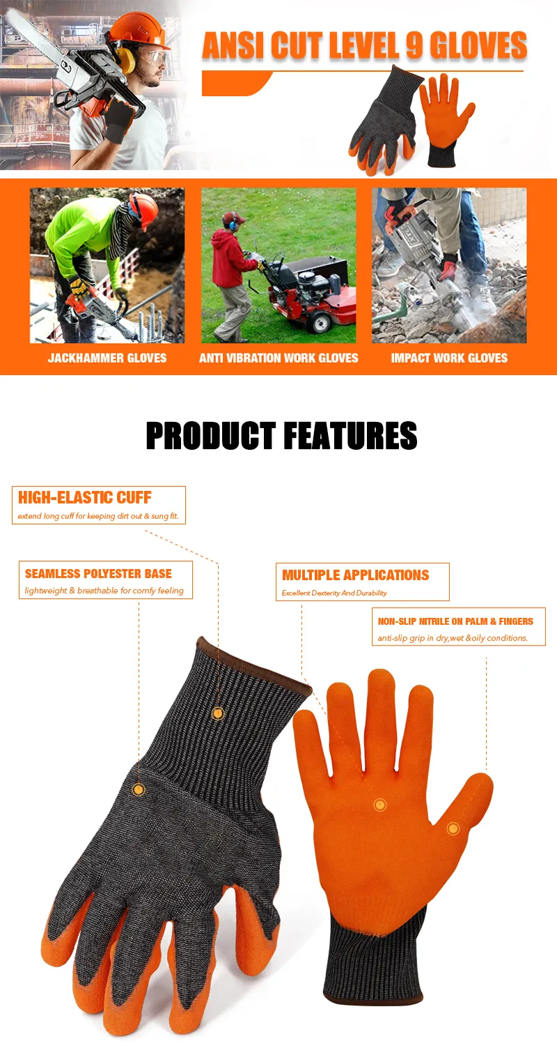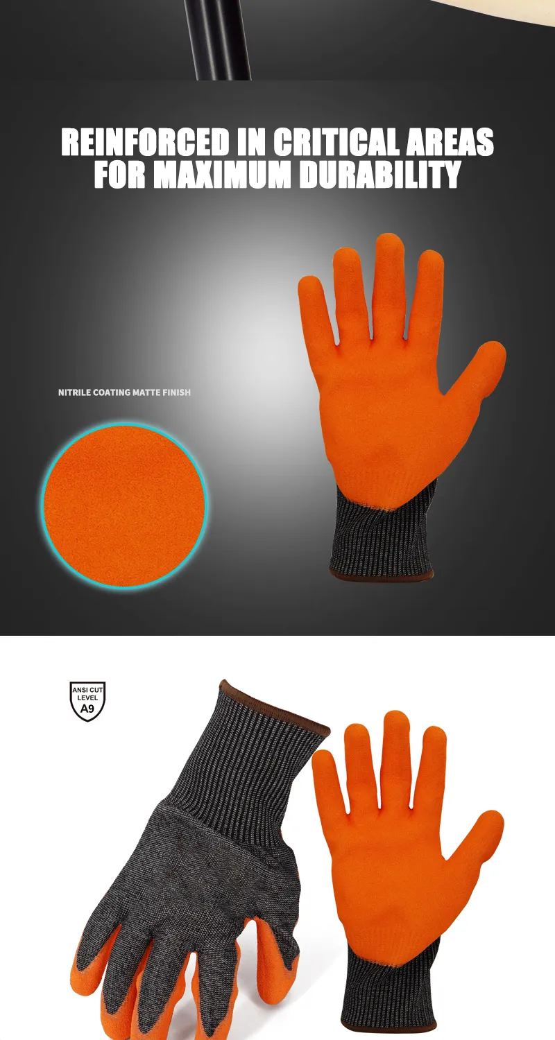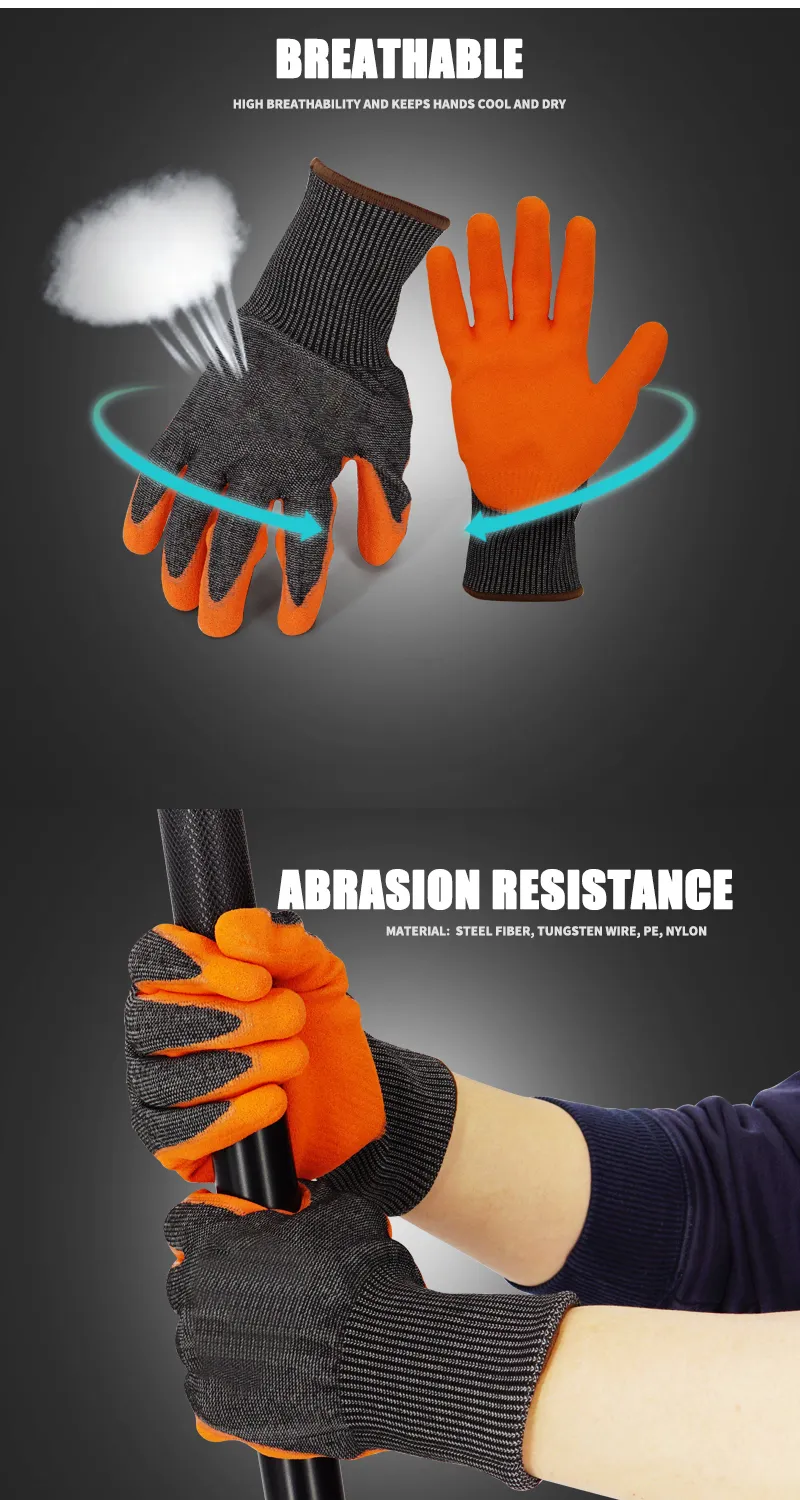 • ANSI Cut Level 9 Rubber Latex Coated for Work Construction Crinkle Pattern Nitrile Latex Dip Glove