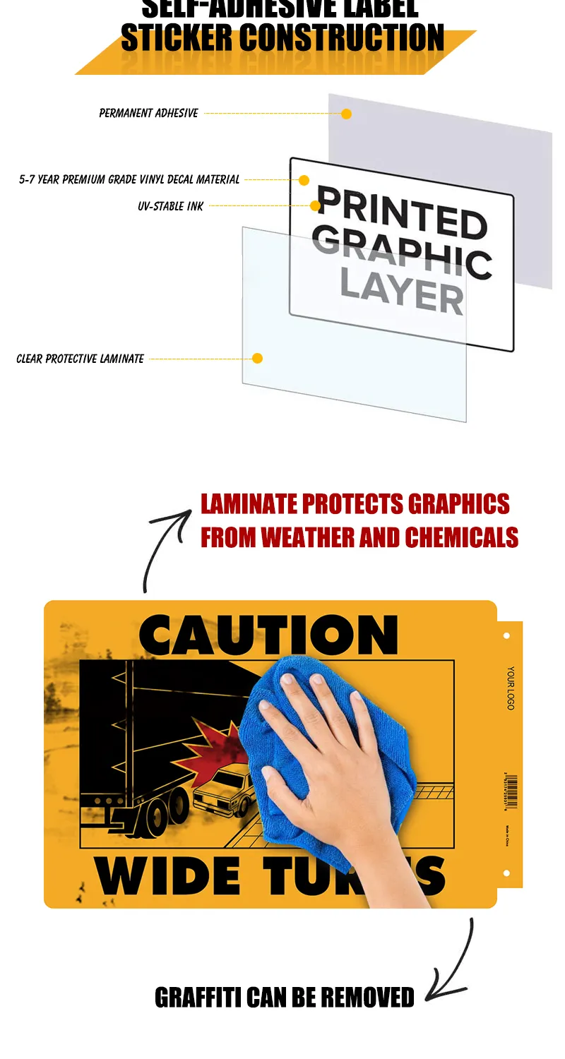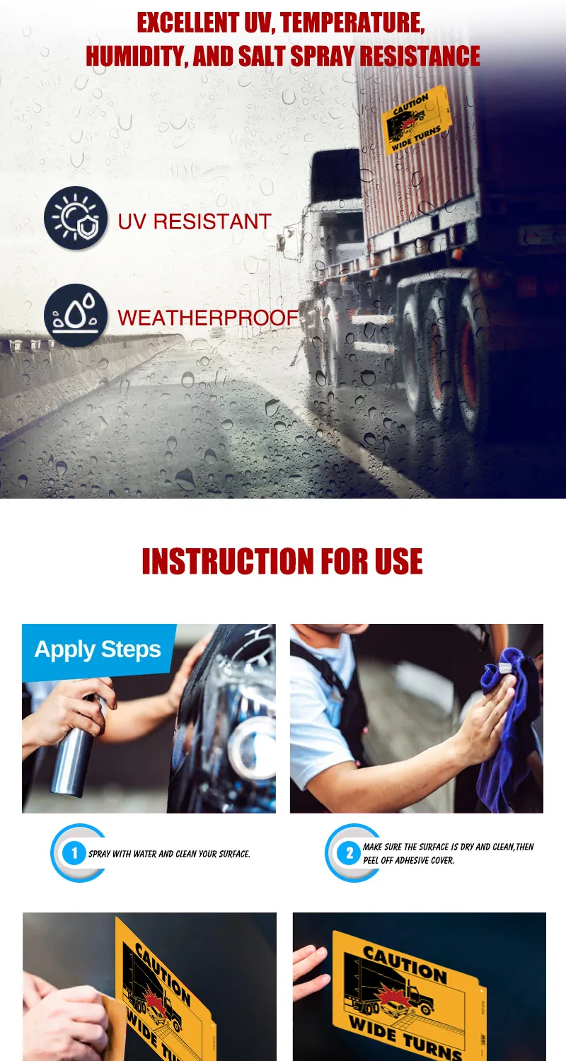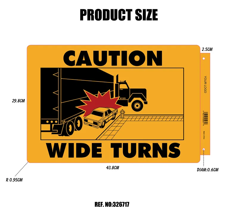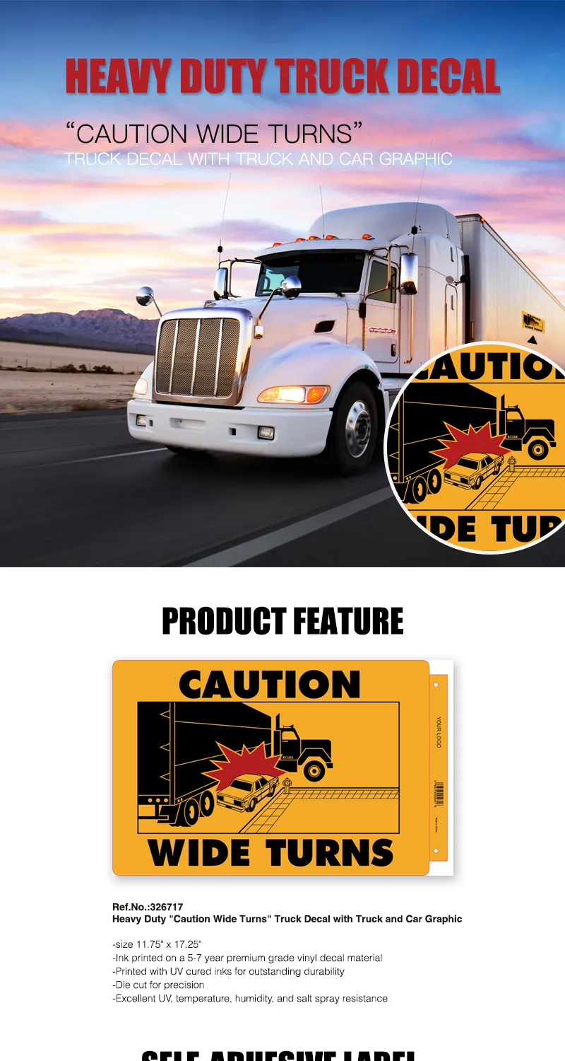 Caution Wide Turns Truck Decal with Truck and Car Graphic Driving Warning Decals Wide Turns Sticker