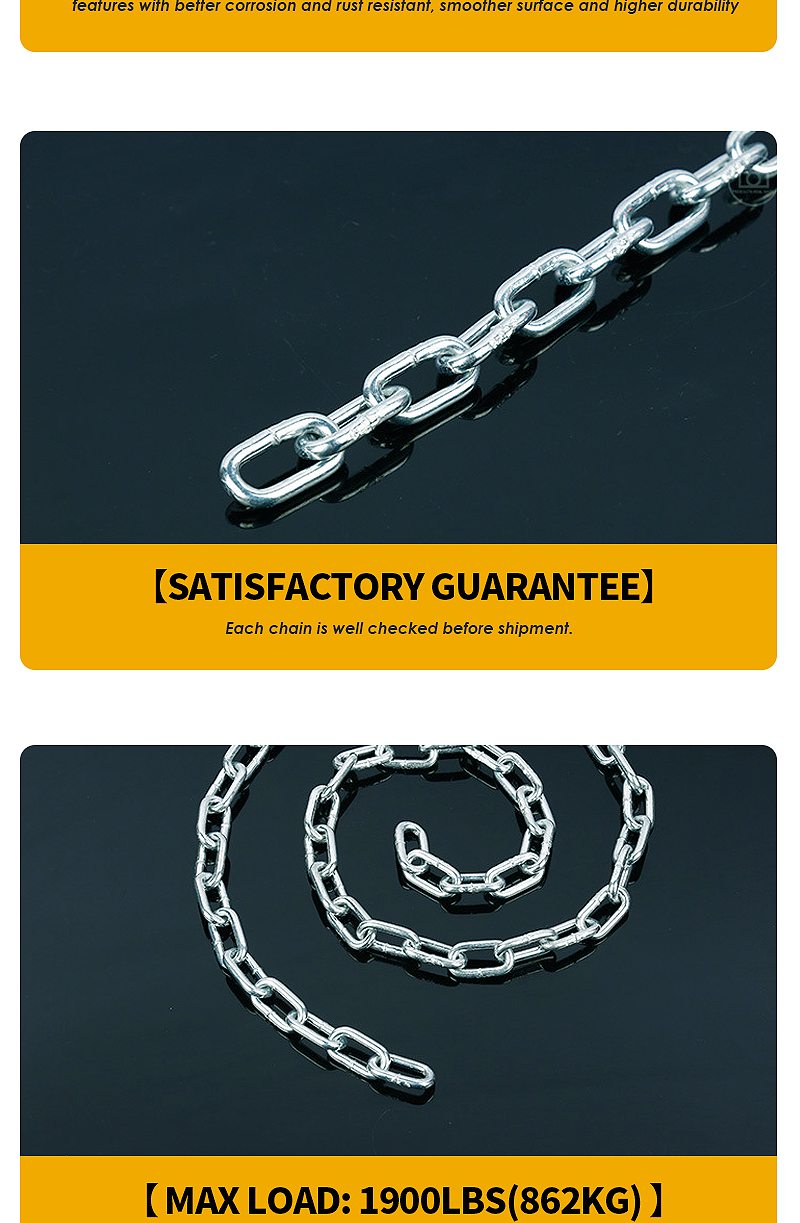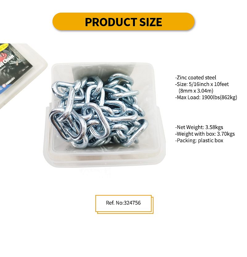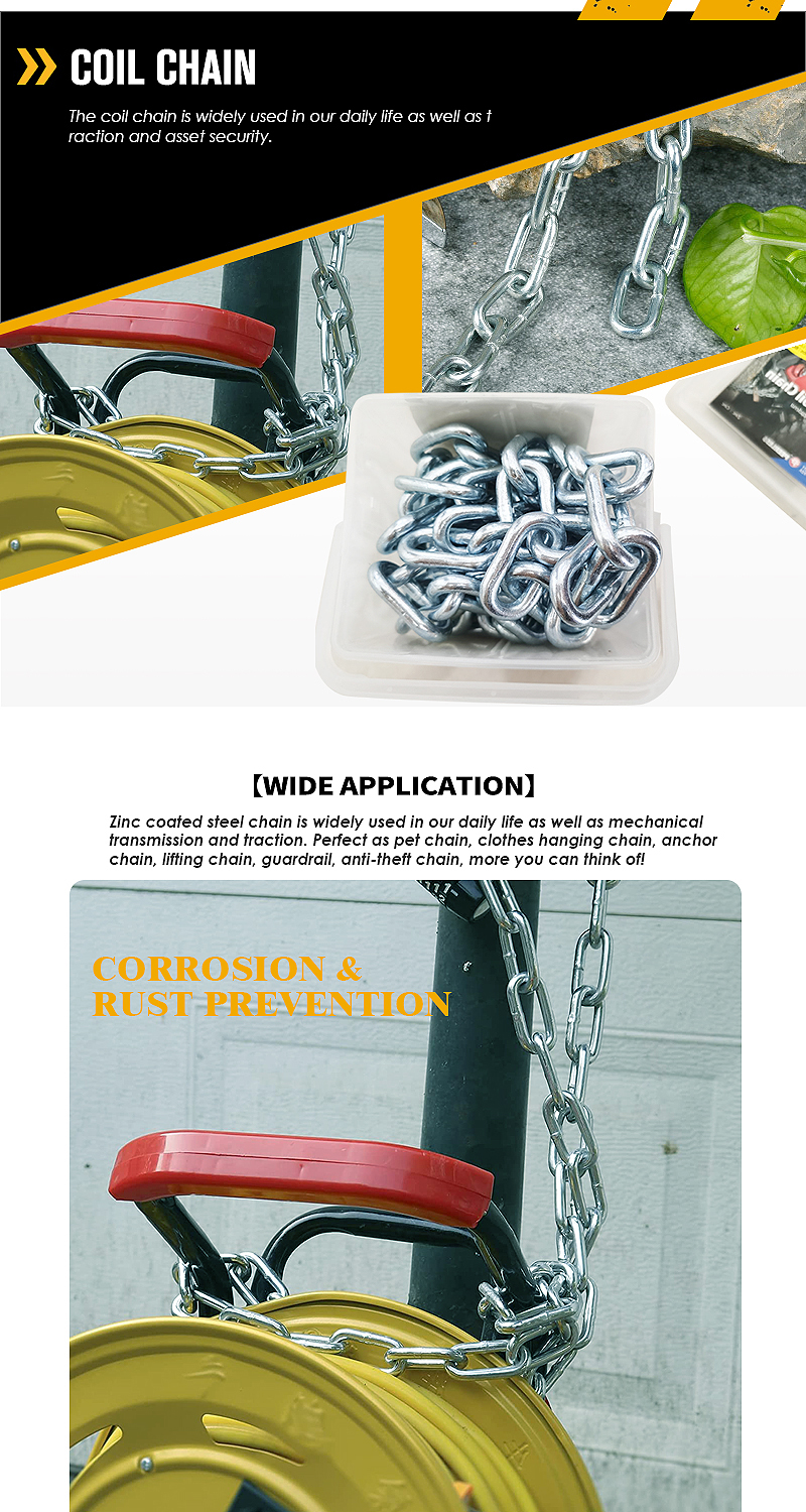 Custom 1900lbs Coil Chain Zinc Coated Steel 5/16" Diameter Coil Chain
