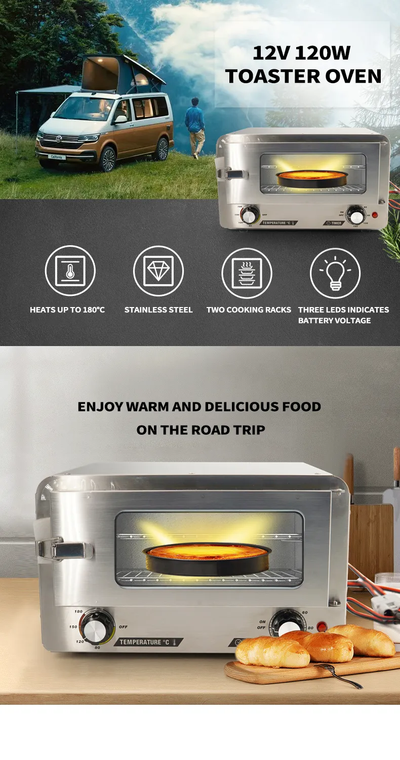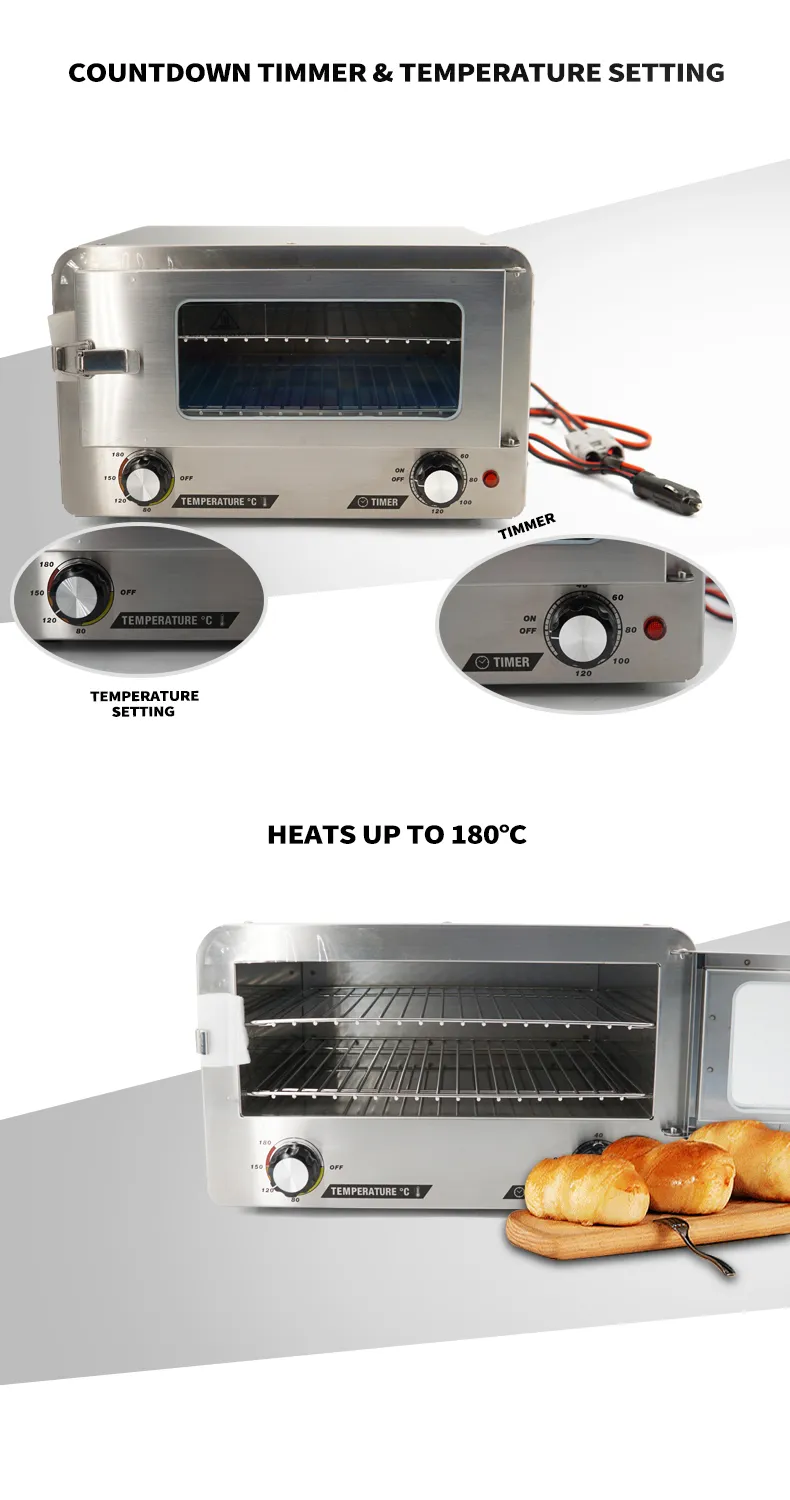 DC12V 120W Stainless Steel Toaster Oven Food Heater Portable Microwave For Car/Truck/Camping