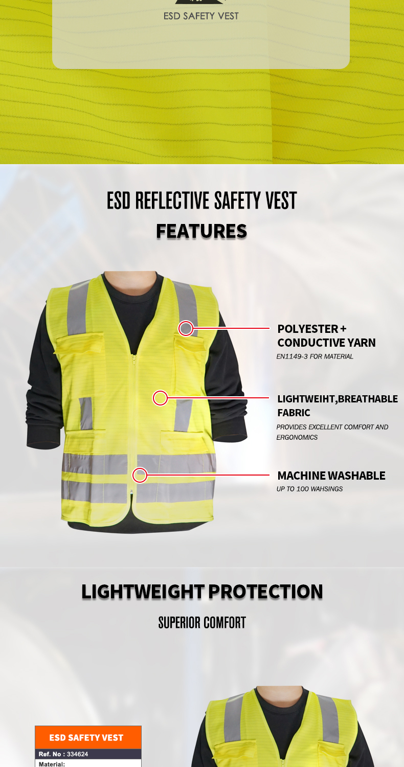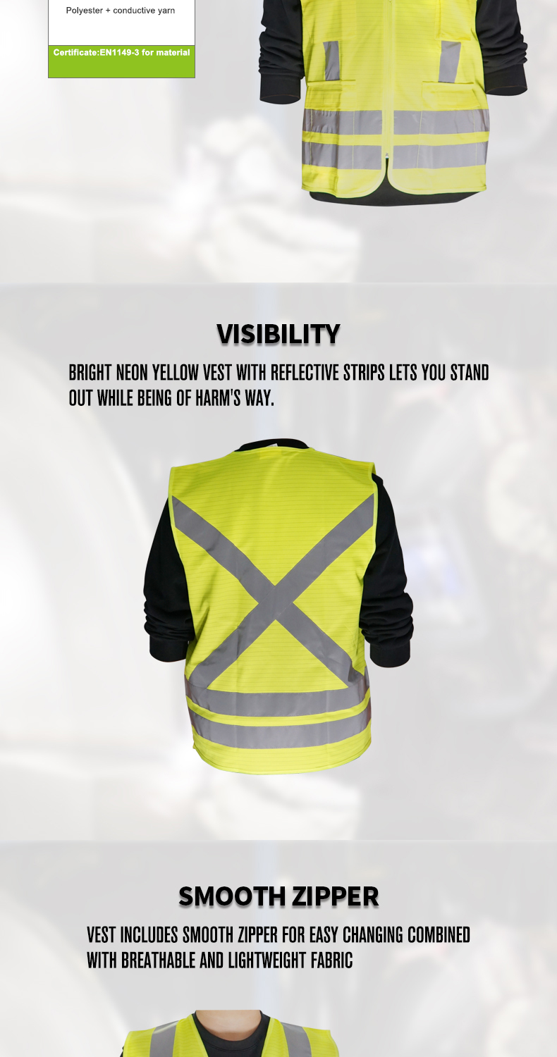 Esd High Visibility Security Reflective Safety Reflector Vest Anti Static Work Safety Clothes
