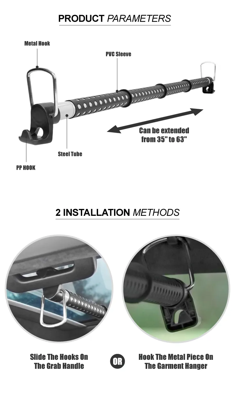 Expandable Clothes Hanger Clothing Rod Bar Garment Rack Holder For Cars