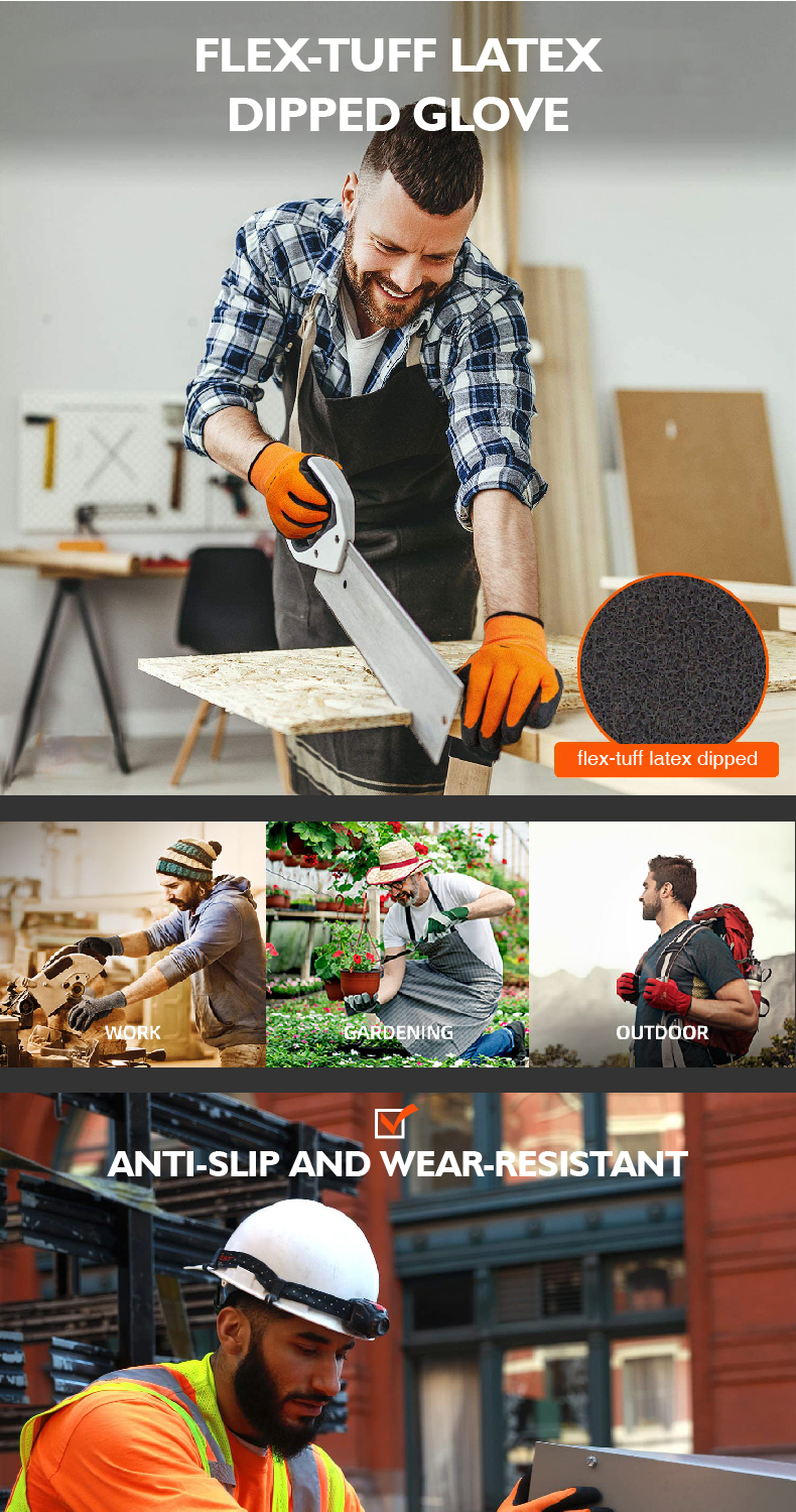 Flex-Tuff Latex Dipped Nitrile Gardening And Nitrile Flat Dip Work Gloves