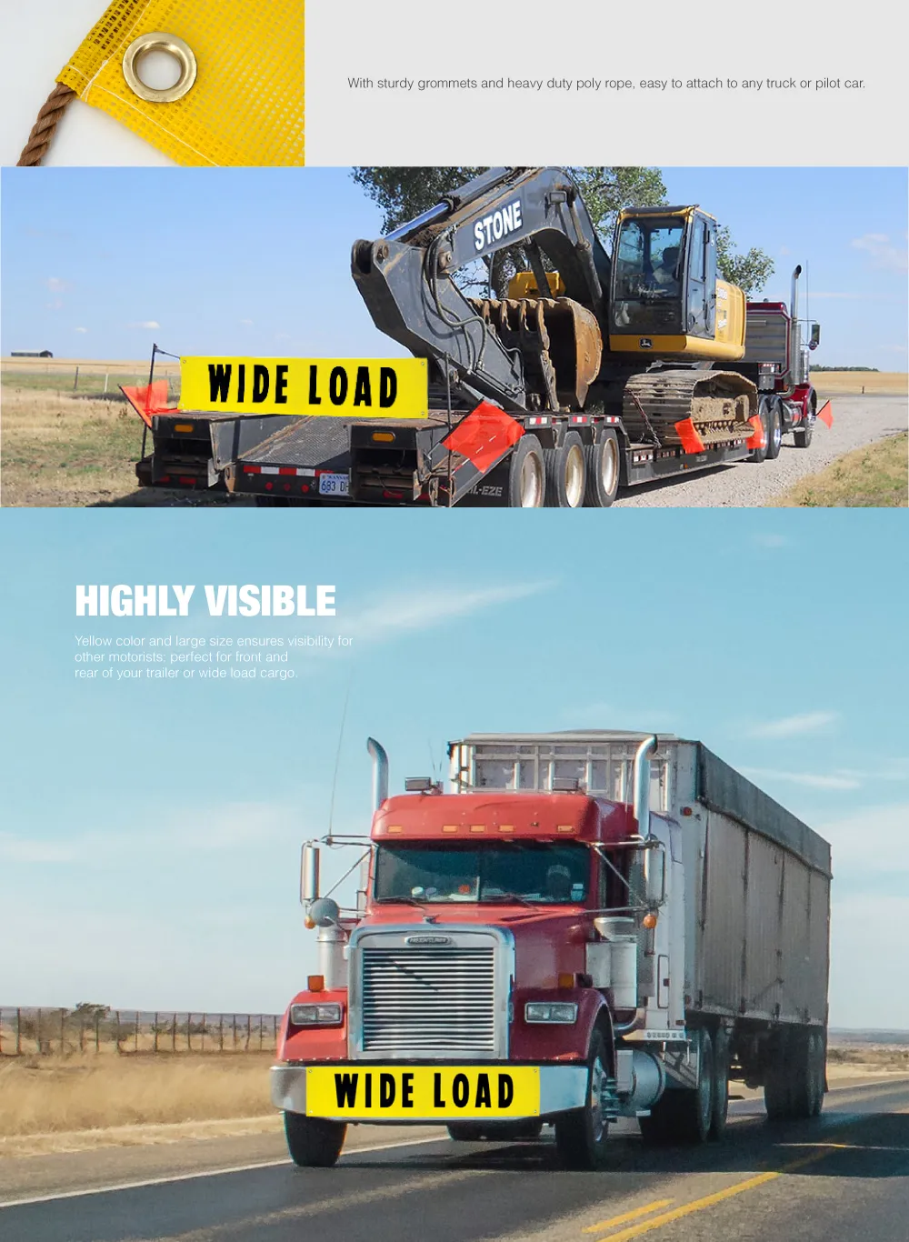 FMCSA 393.87 approved UV resistant Grade 4 Silk Screen Print UV Print 12 x 72 Inches/18 x 84 Inches/18 x 96 Inches Safety Banner Wide Load sign Banner With Grommets And Ropes
