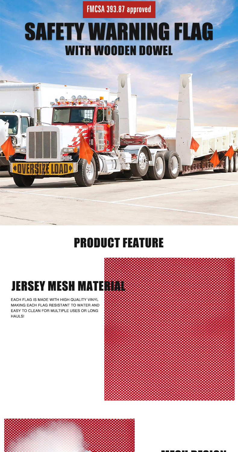 FMCSA 393.87 approved 18 x 18 Inches/24 x 24 Inches Polyester Jersey Mesh Safety Flag With Wooden Dowel