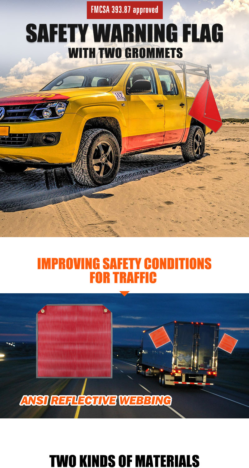 FMCSA 393.87 approved 18 x 18 Inches PVC Mesh Jersey Mesh Safety Flag With Two Grommets ANSI Reflective Webbing