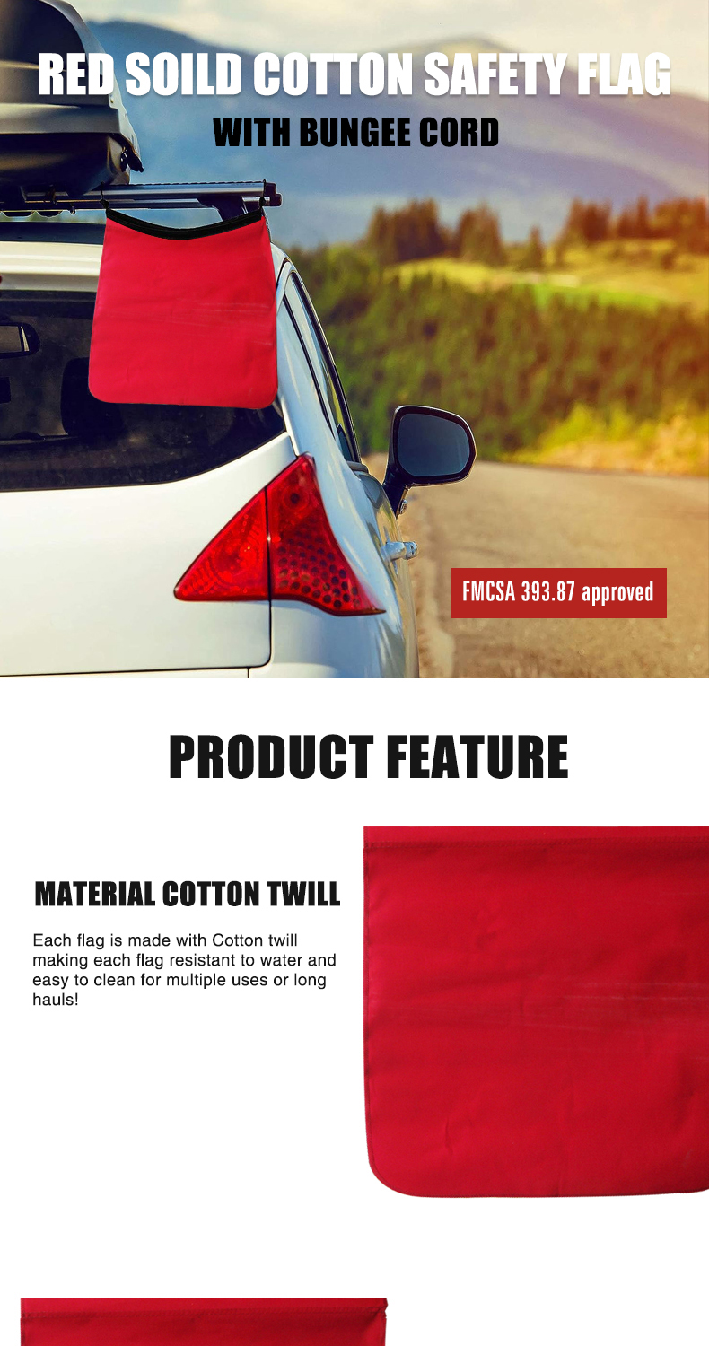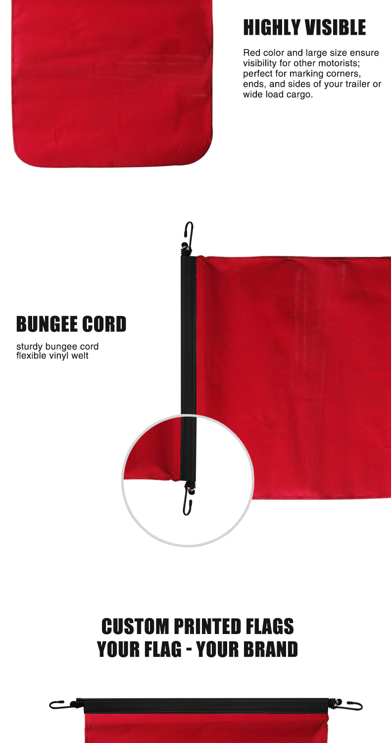 FMCSA 393.87 Approved 18 X 18 Inch Red Soild Cotton Safety Flag With Bungee Cord