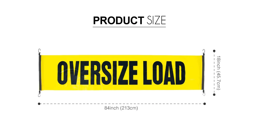 FMCSA 393.87 approved UV resistant Grade 4 18 x 84 Inches Two Sides Printed Silk Screen Print UV Print Safety Banner Oversize/Wide Load sign With Bungee Hooks