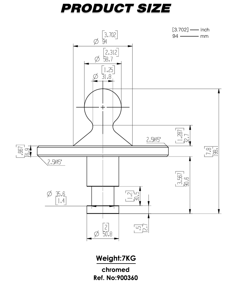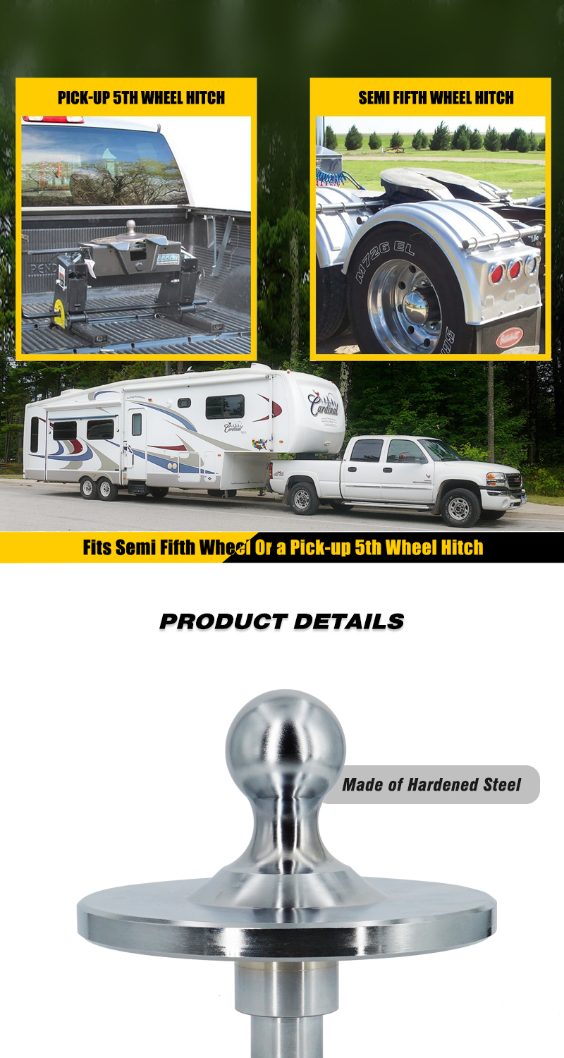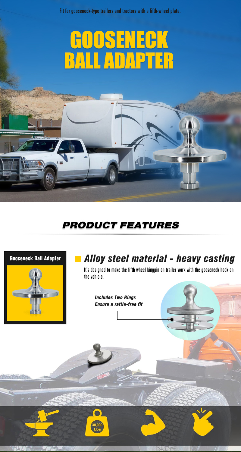 Gooseneck Ball Adapter Kingpin to Gooseneck Ball Adapter Hitch Used for Tractor-Trailer Fifth Wheels