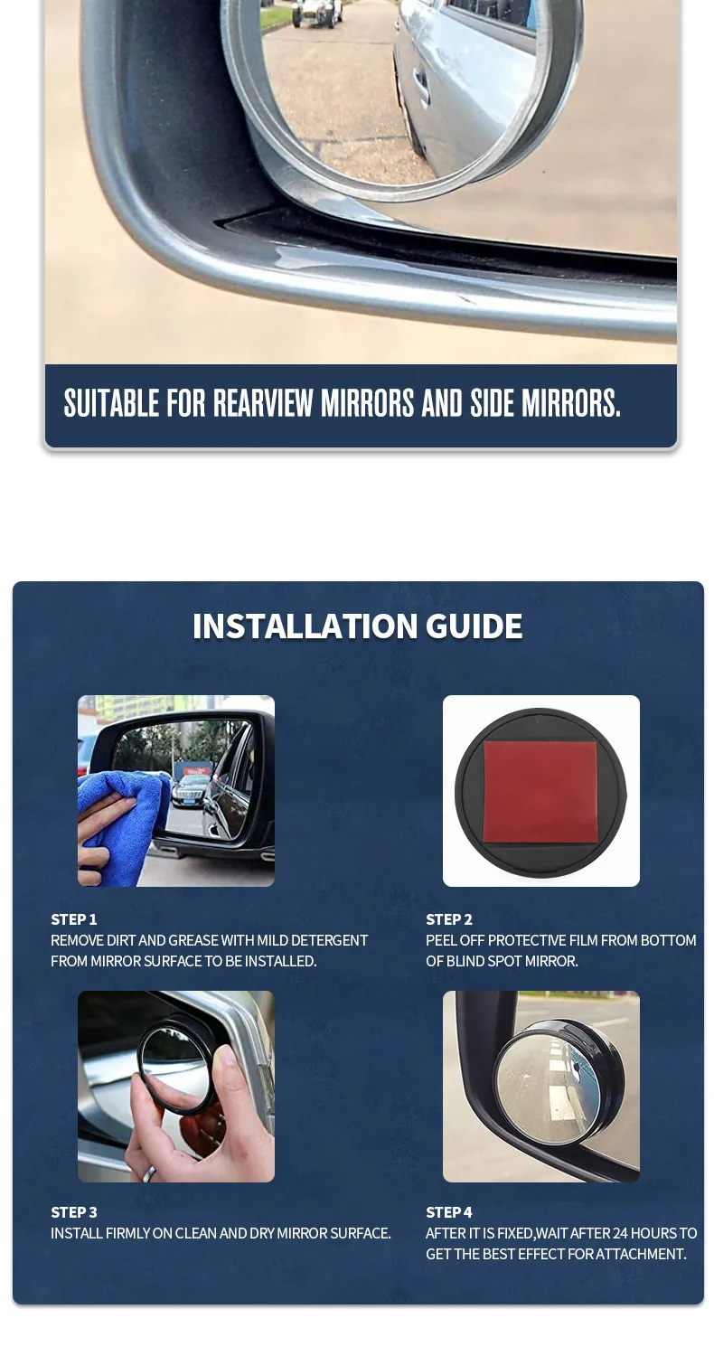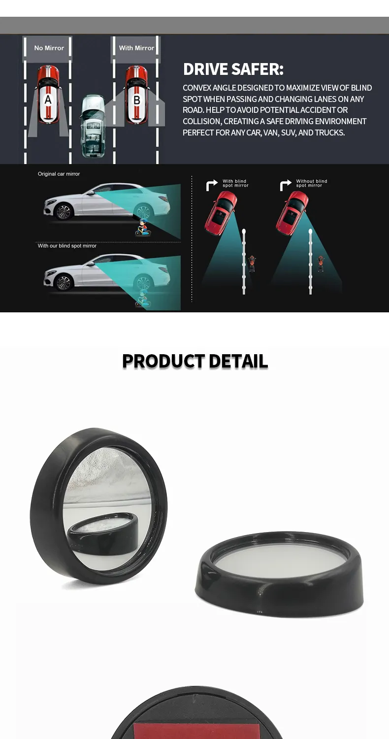 HD Glass and ABS Housing Wide Angle Convex Rear View Blind Spot Mirrors For Cars