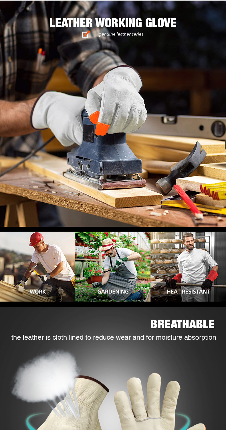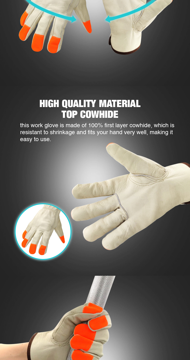 Heavy Duty Durable Cowhide Leather Work Gloves Driver Gloves for Truck Driving, Warehouse, Gardening, Farming