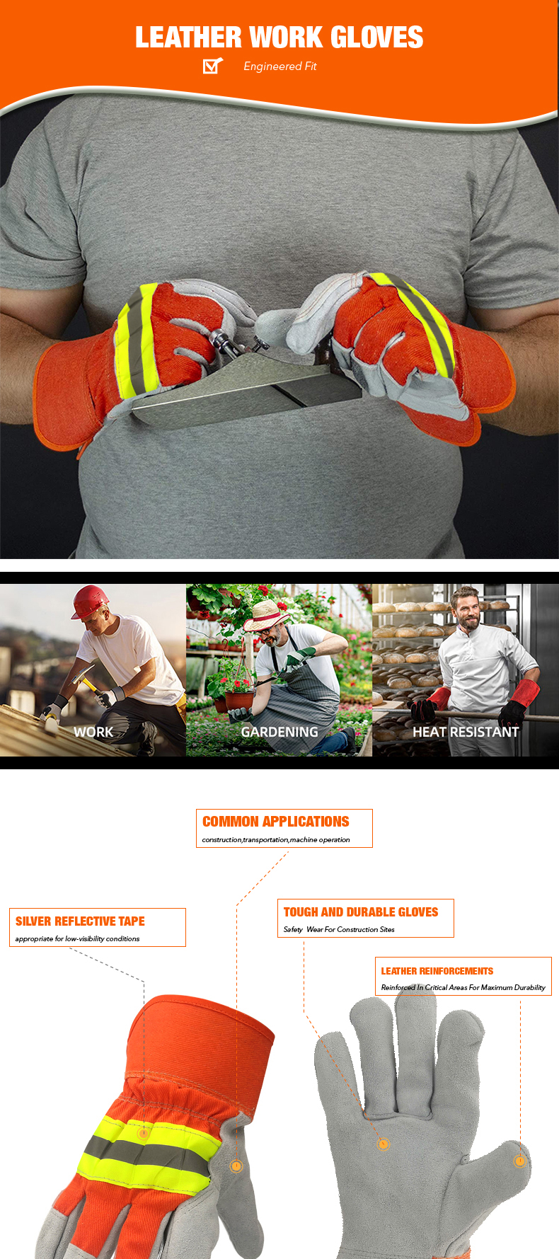 Heavy Duty Durable Cowhide Leather Working Safety Gloves for Warehouse Gardening Farming