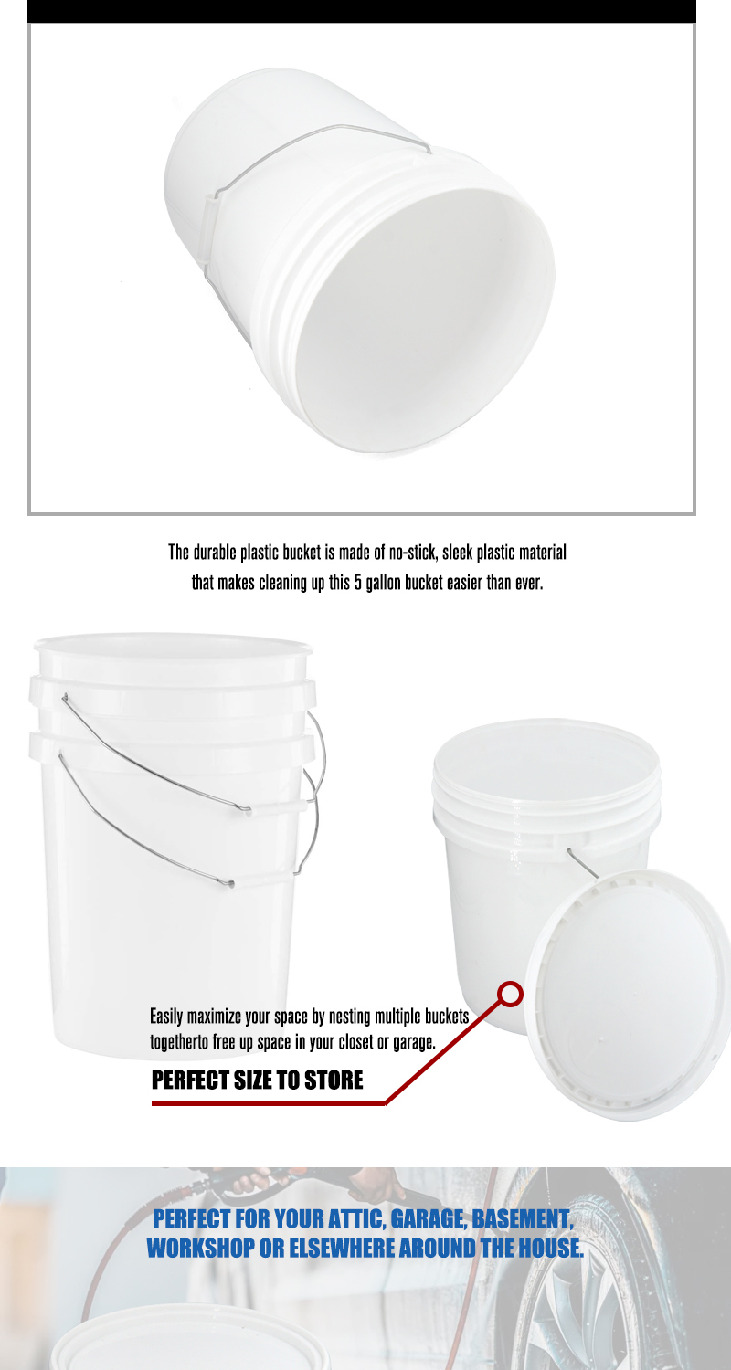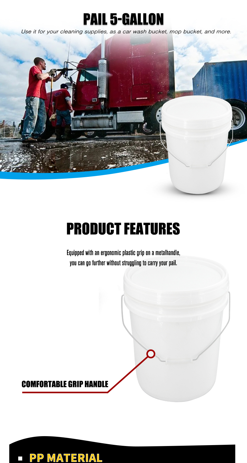 Heavy-Duty Pail 5-Gallon Plastic Bucket Comfortable Handle