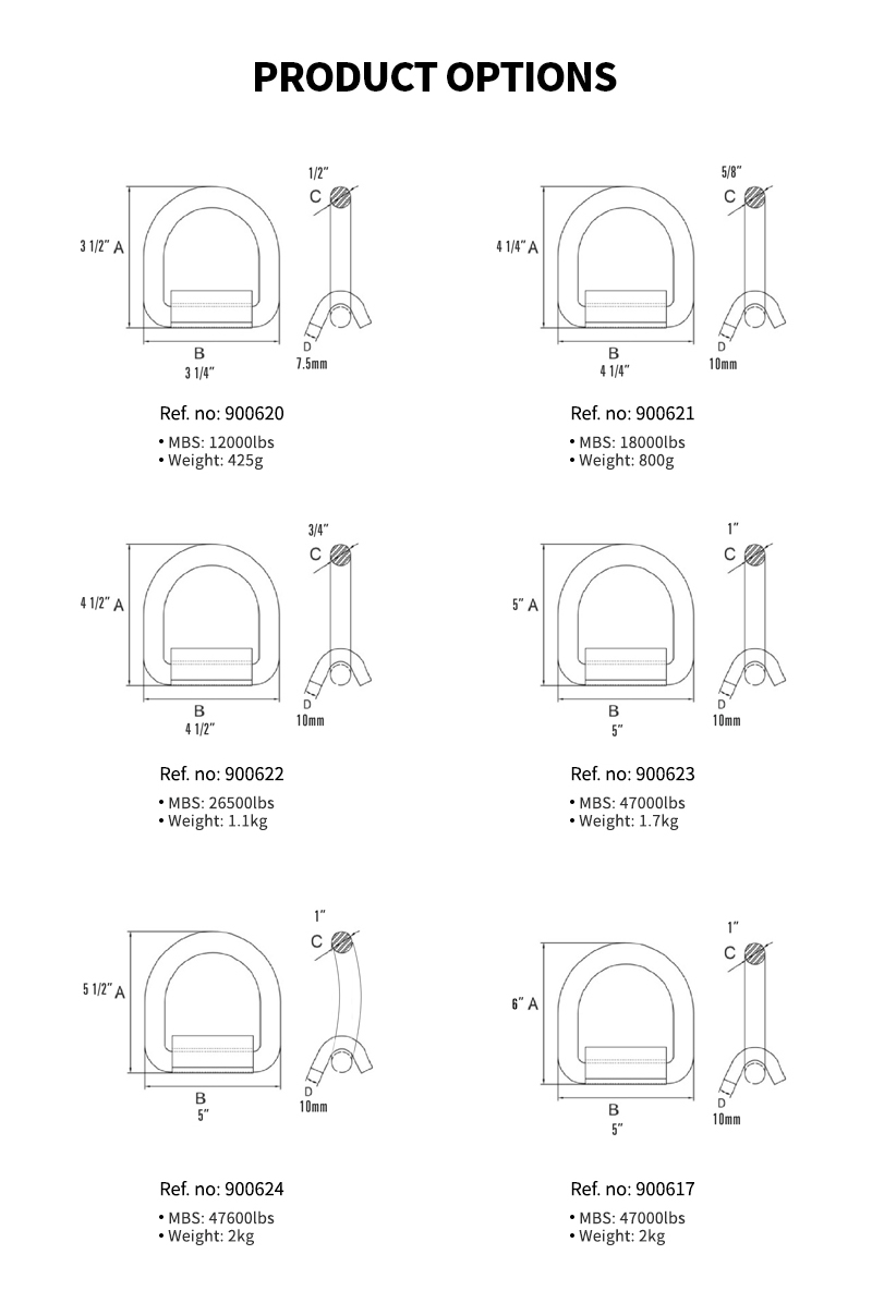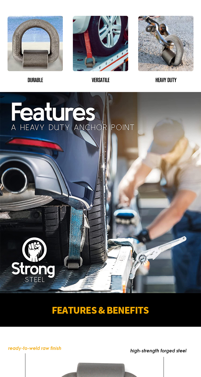 Heavy Duty Weld-On Forged D Ring 47000 Pounds Break Strength for Trailers Trucks and Cargo Tie Downs