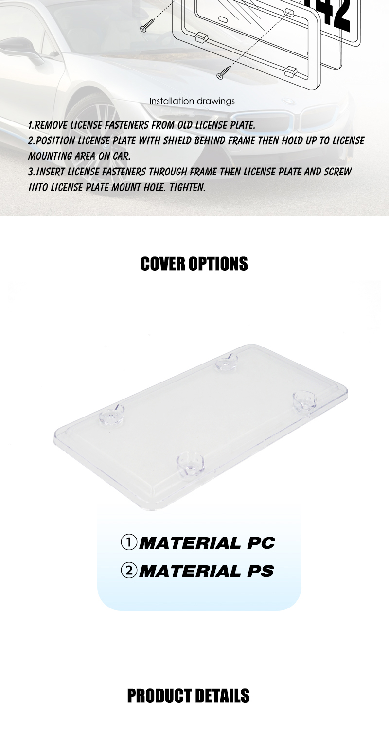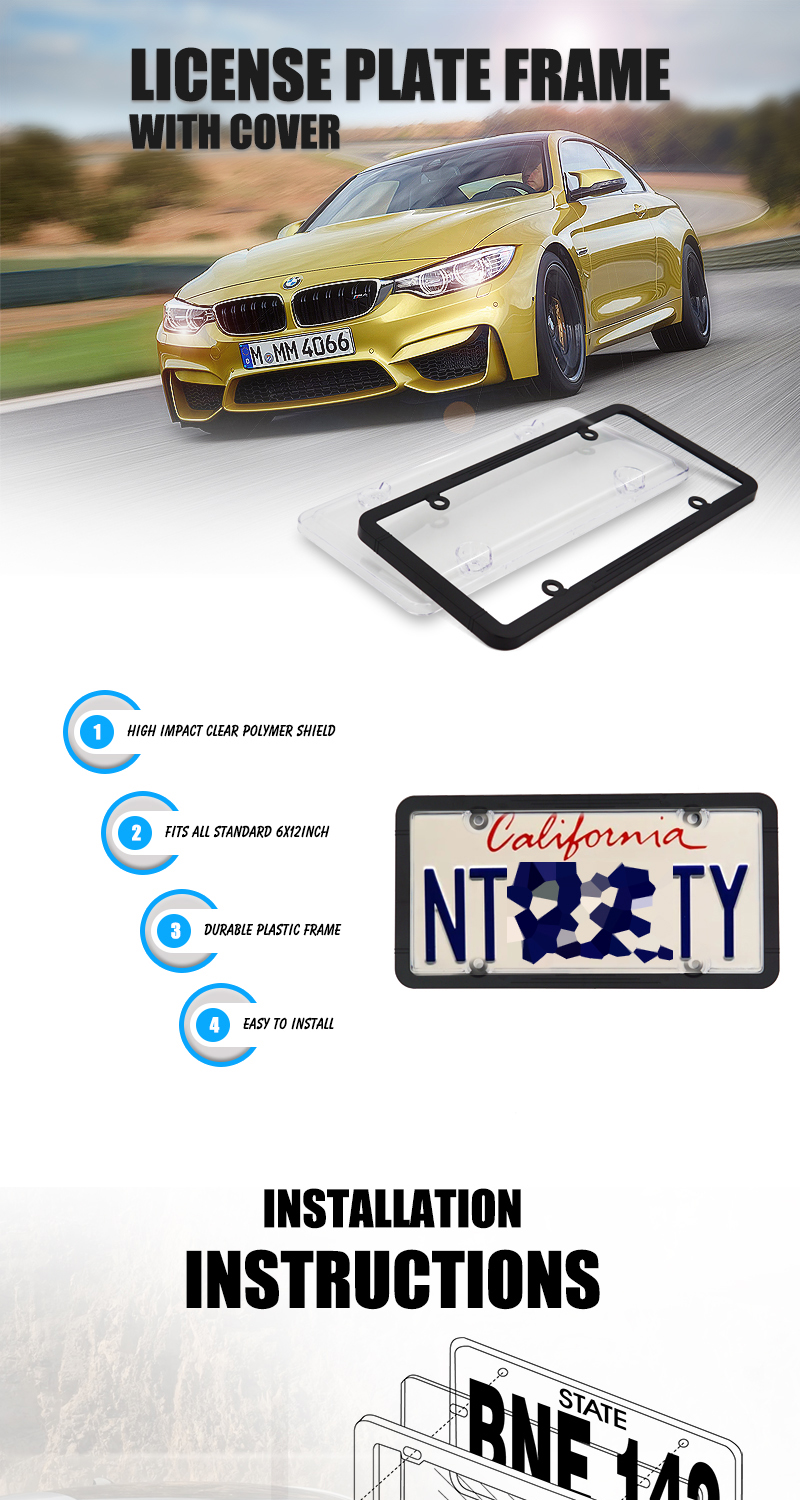 High Quality Plastic Car ABS License Plate Frame With PC/PS Cover