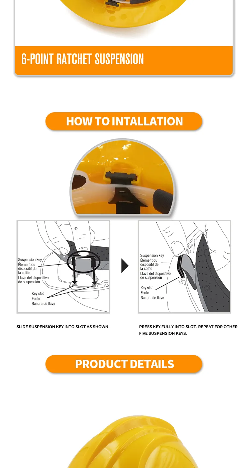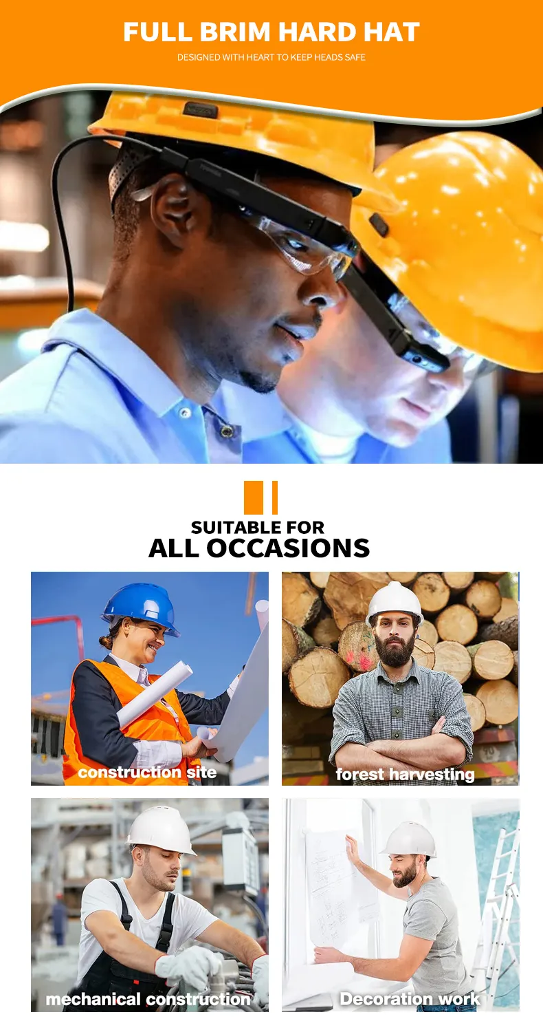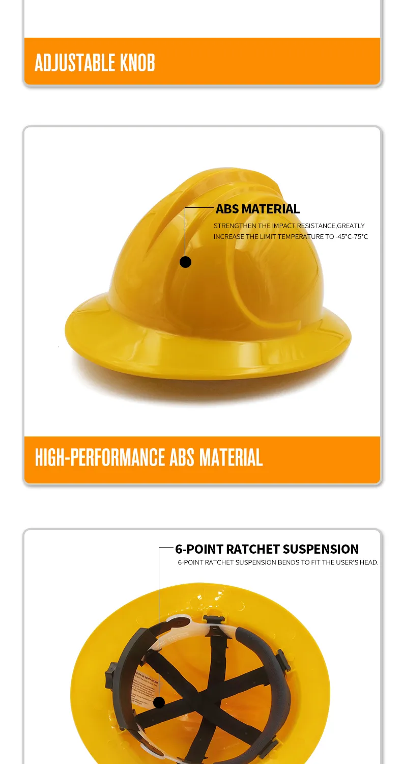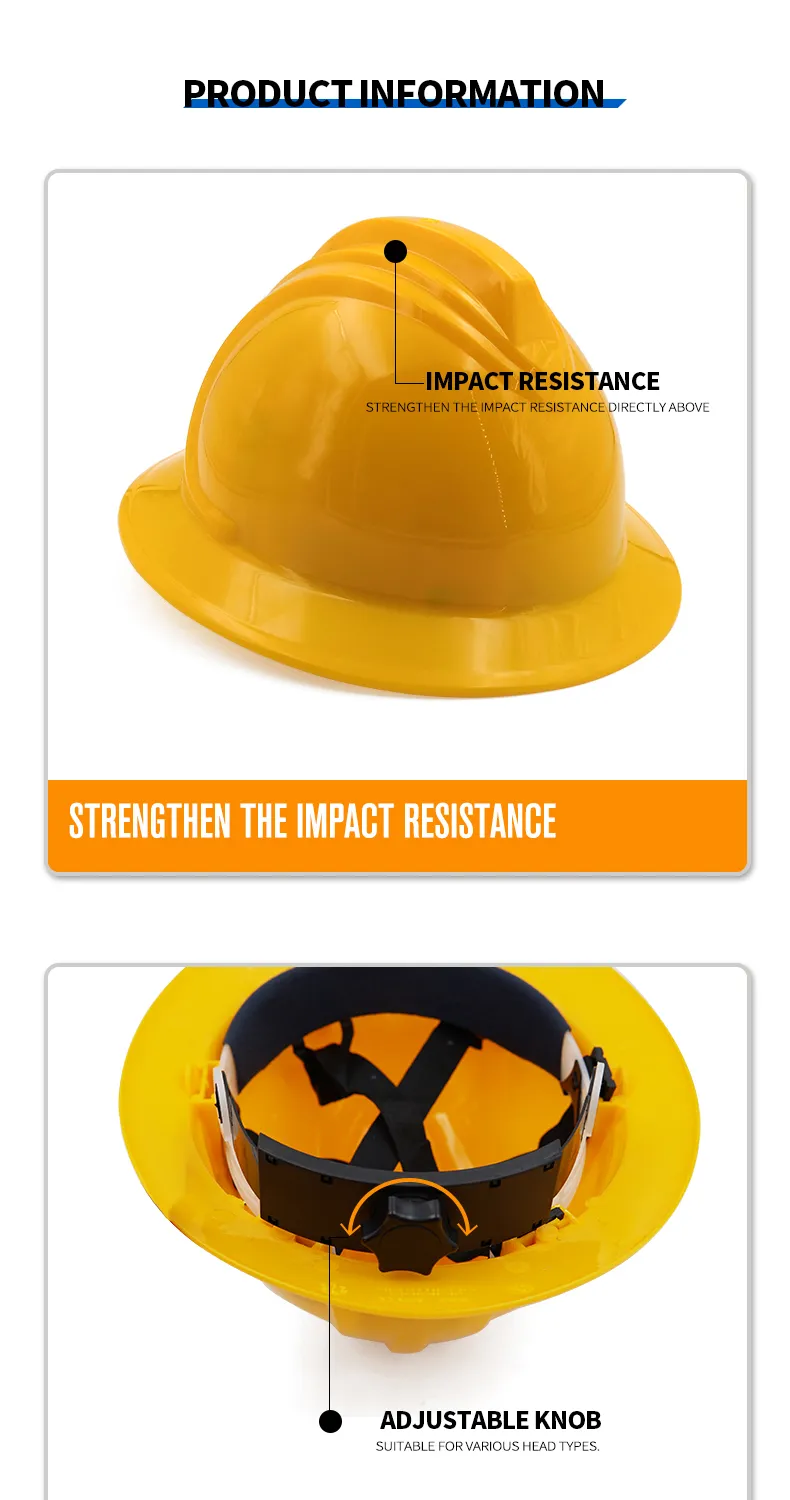 Industrial Full Brim Hard Hat Work Safety Helmet with Adjustable 6 Point Ratchet Suspension