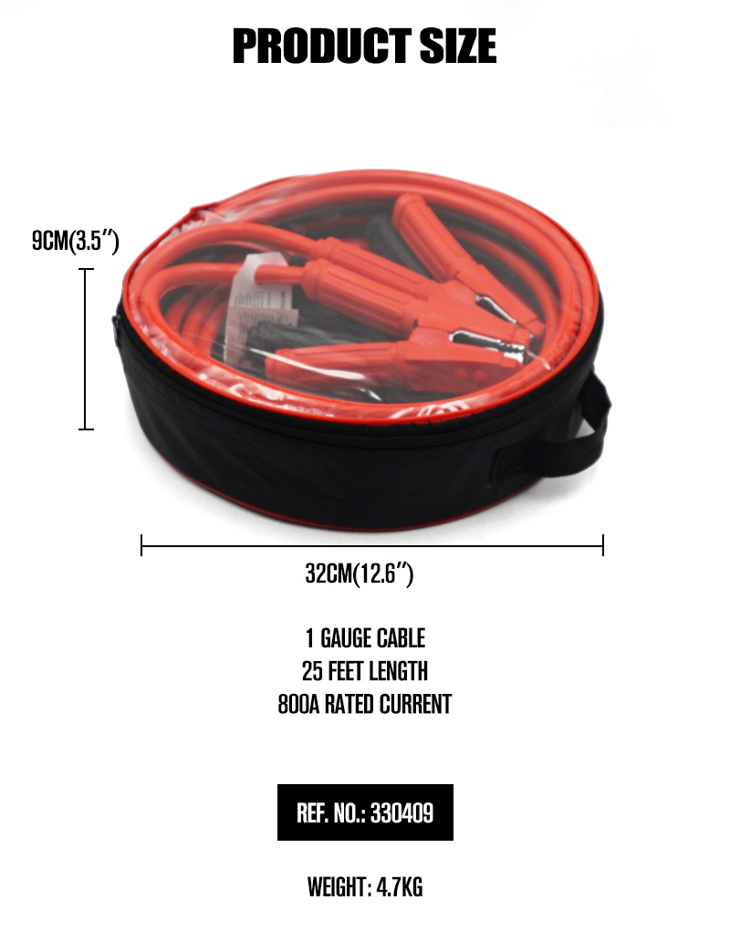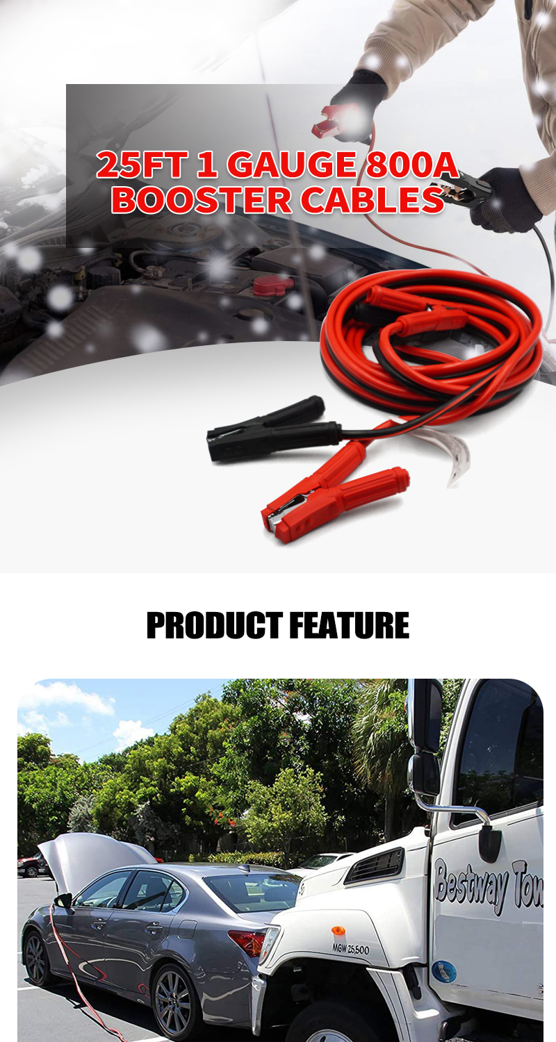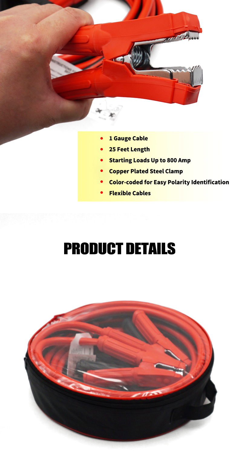 Jumper Cables 1 Gauge 25 Feet Heavy Duty Booster Cables with Carry Bag Jump Start Dead or Weak Batteries for Car