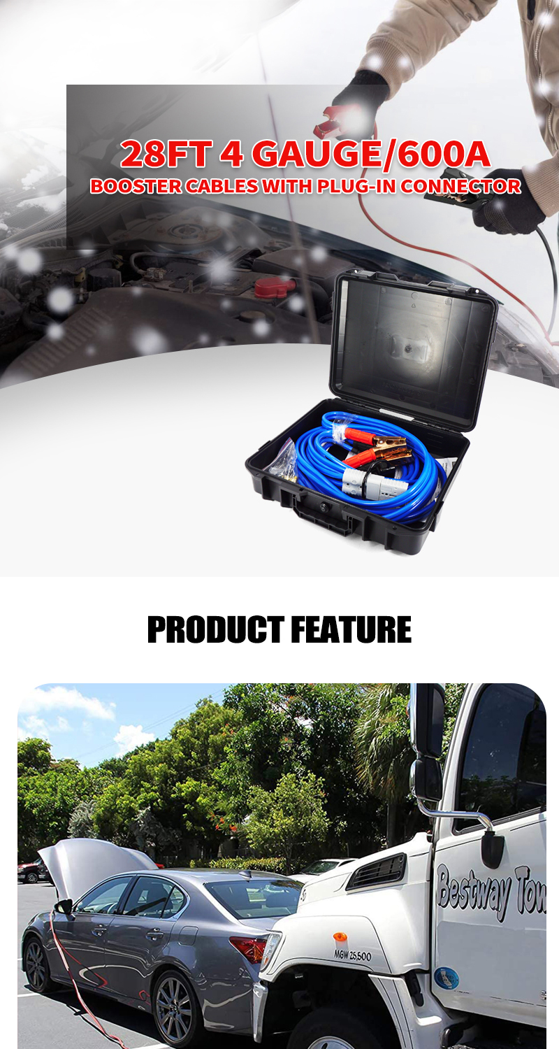 Jumper Cables 28FT 4 Gauge/600A Booster Cables with Plug-in Connector