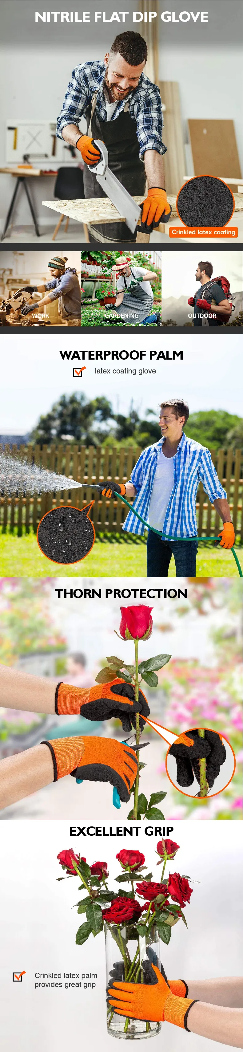 Latex Rubber Coated Gardening and Work Gloves Nitrile Flat Dip Glove Nitrile Coating Gardening and Work Gloves