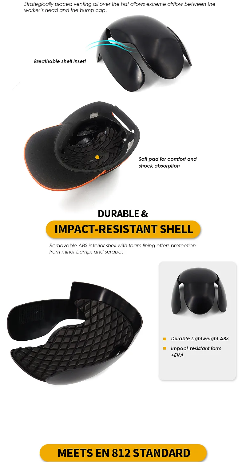 Lightweight ABS EVA Protective Bump Cap Insert Breathable Head Protection