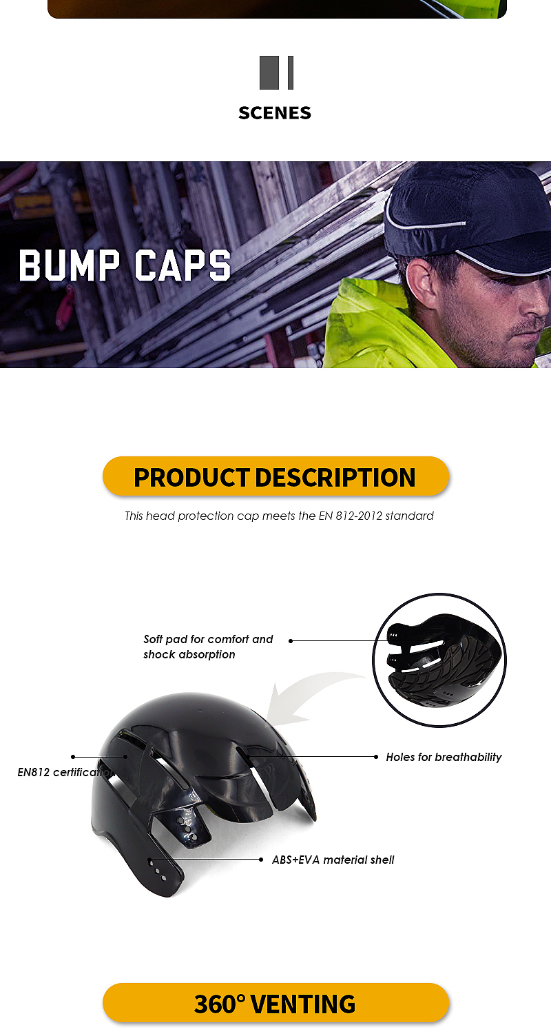 Lightweight ABS EVA Protective Bump Cap Insert Breathable Head Protection