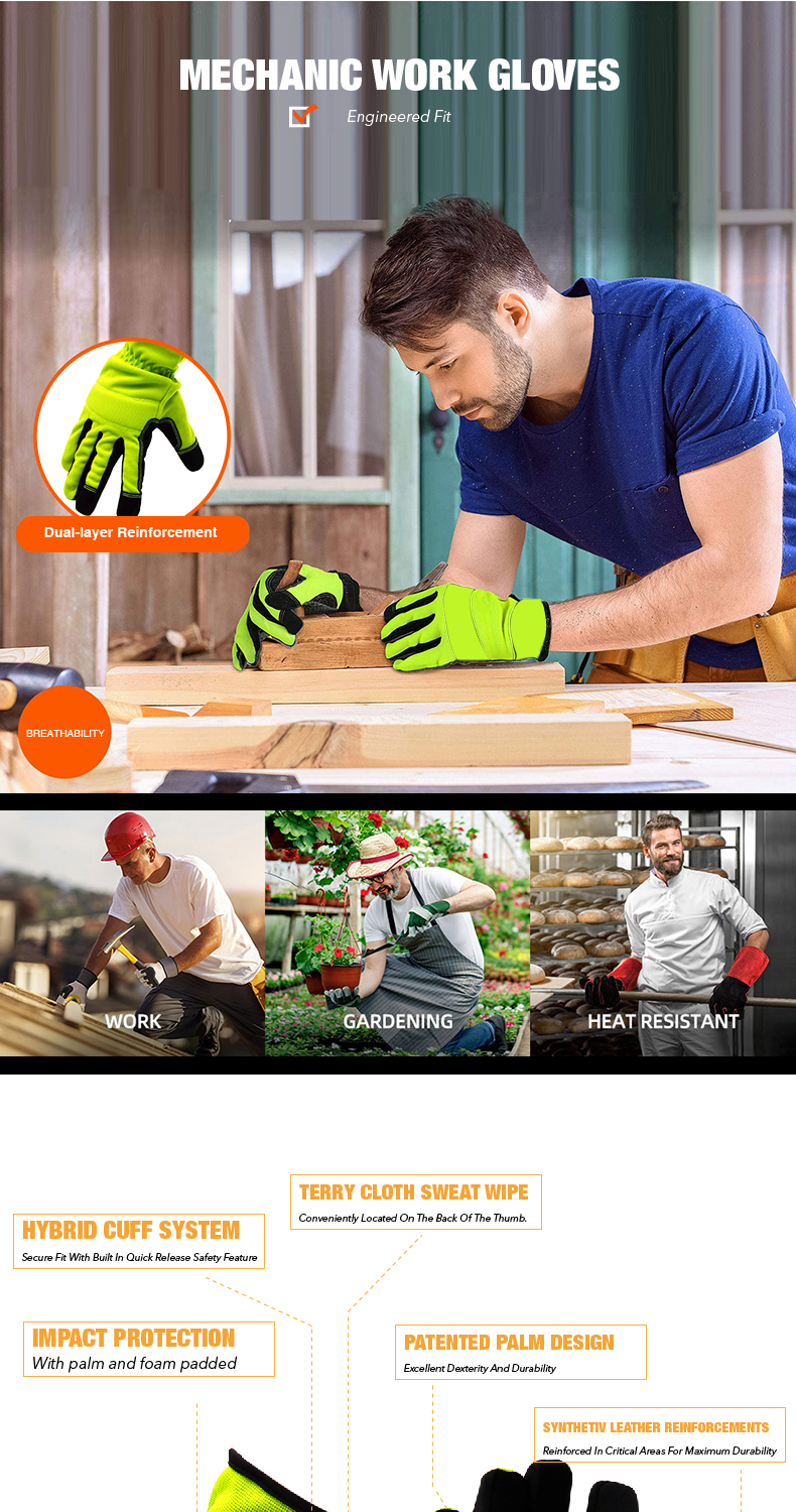 Mechanic Working Gloves Safety Work Gloves Durable Lightweight Suitable Yard Work Gloves