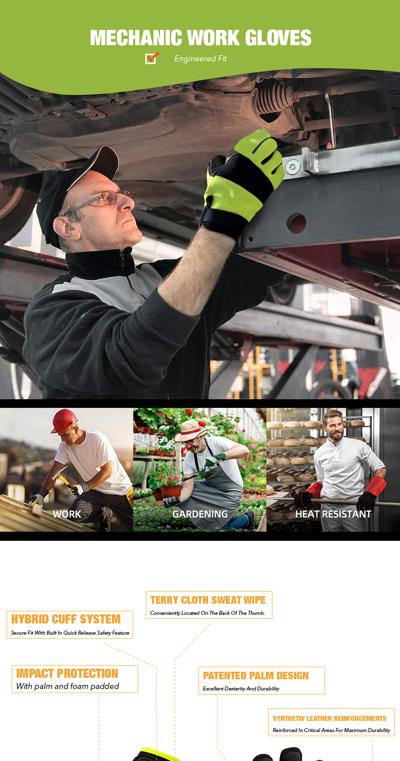 mechanic working Safety Work Gloves Durable Lightweight Suitable Gloves for Home Delivery Yard Work