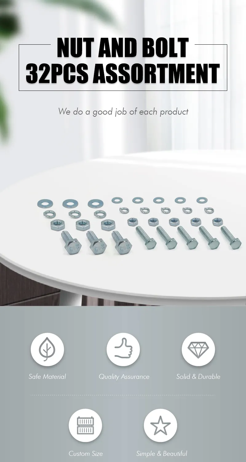 • Nut and Bolt 32pcs Assortment Hex Nuts multi-layer gavanizztion