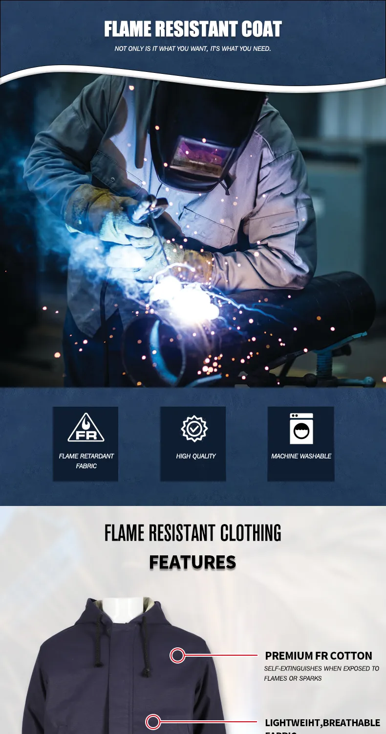 OEM fashion Flame Resistant FR retardant hoodie safety clothing coat jacket