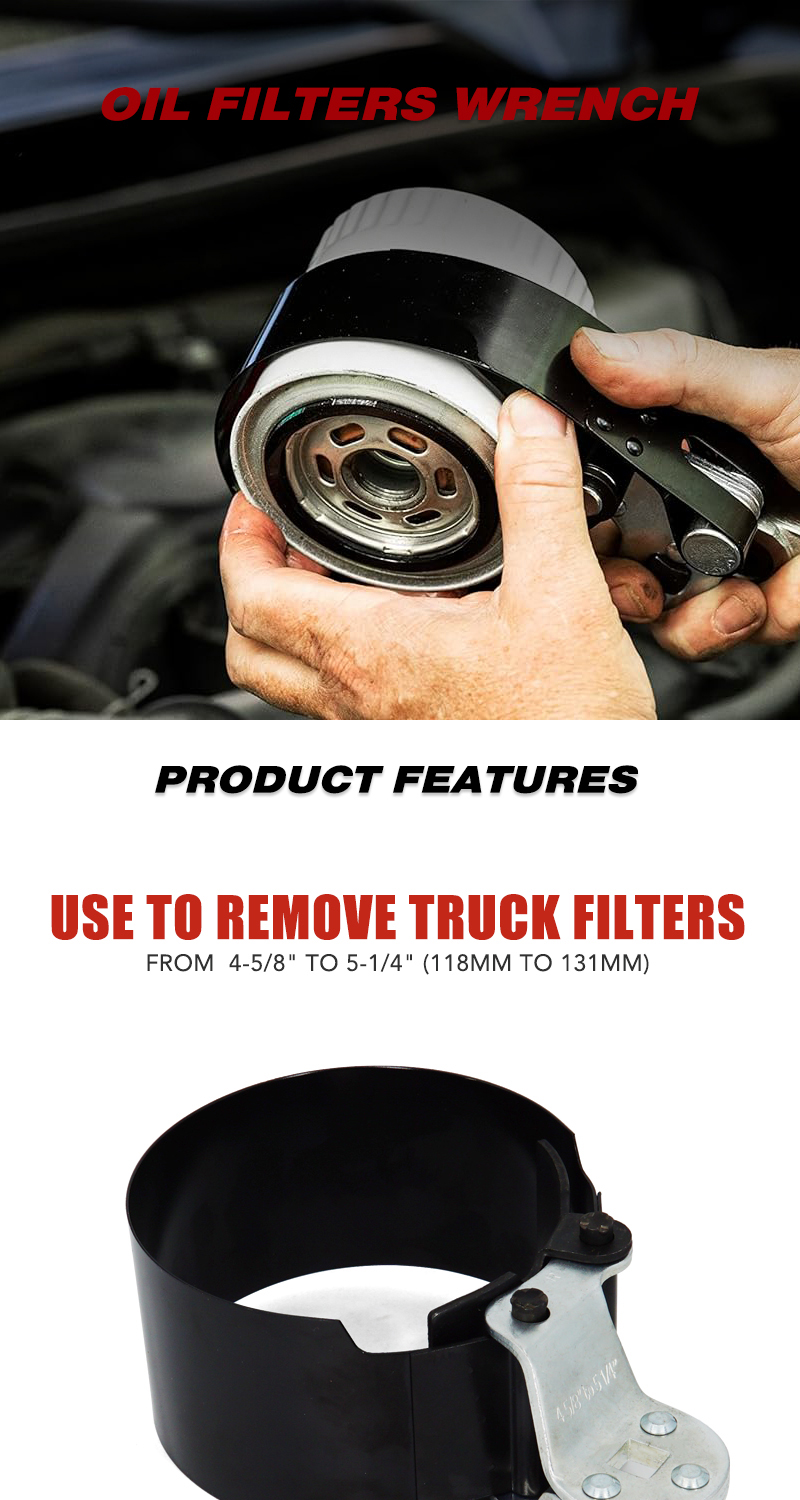 Oil Filter Wrench Oil Filter Removal Tool Fits Filters 4-5/8" to 5-1/4"