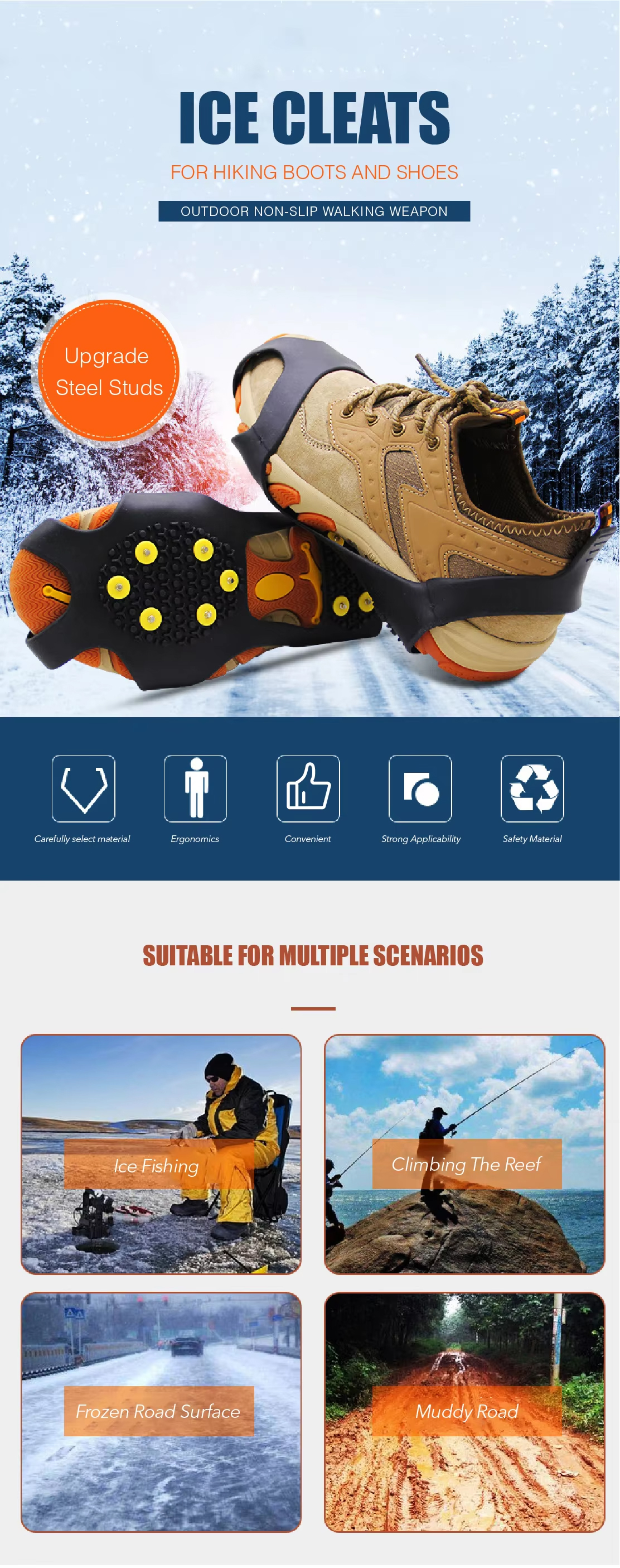 Outdoor Ice Cleats for Hiking Boots and Different Styles Shoes 10 Steel Studs Prevent Outdoor Activities from Wrestling