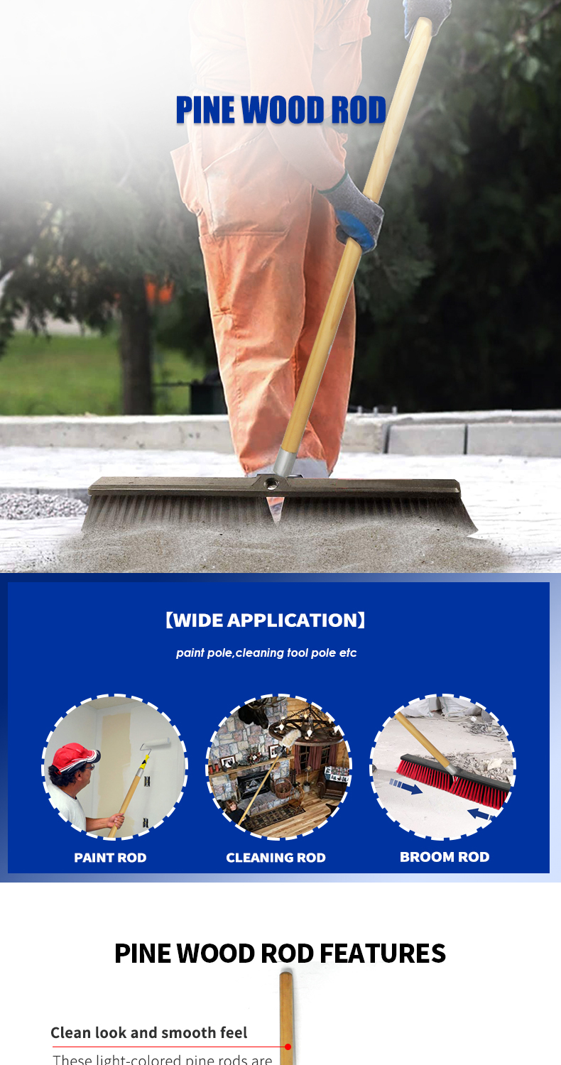 Pine Wood Rod Cleaning Broom Stick for paint broom