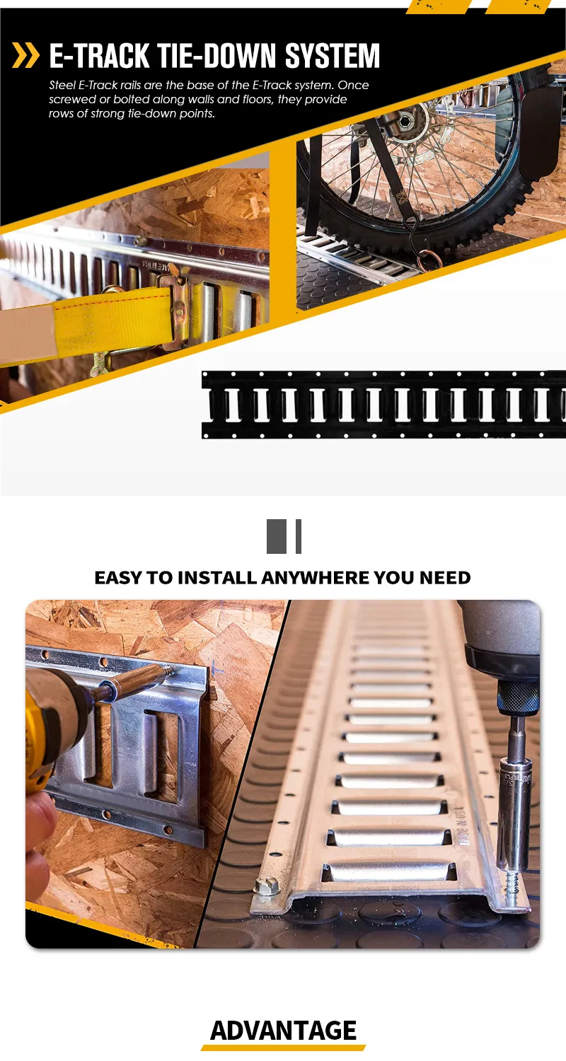 Powder-Coated Steel E-Track Tie-Downs Horizontal E-Tracks Bolt-On Tie Down Rails for Cargo on Pickups, Trucks, Trailers, Vans